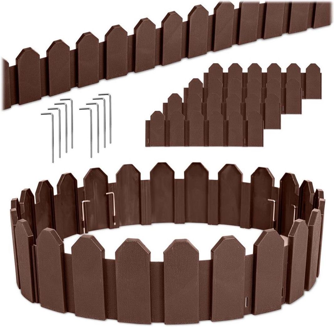 Obrzeże ogrodowe Plonos 2,4 m Wytrzymały materiał PP — odporny na UV, mróz i zmiany pogody. Łatwe mocowanie na stalowe kotwy - 8 sztuk w zestawie. Ochrona przed rozsypywaniem kory lub kamieni na trawnik. Modułowa konstrukcja — proste łączenie. Chroni rośliny przed zdeptaniem/skoszeniem. Dowolny sposób montażu. Łatwe formowanie klombów. Łatwe i trwałe mocowanie za pomocą kotw! Specyfikacja Kolor: brązowy Zestaw 4 szt. Wymiary modułu: 60 x 23,5 cm Materiał: PP Szerokość całego zestawu: 2,4m