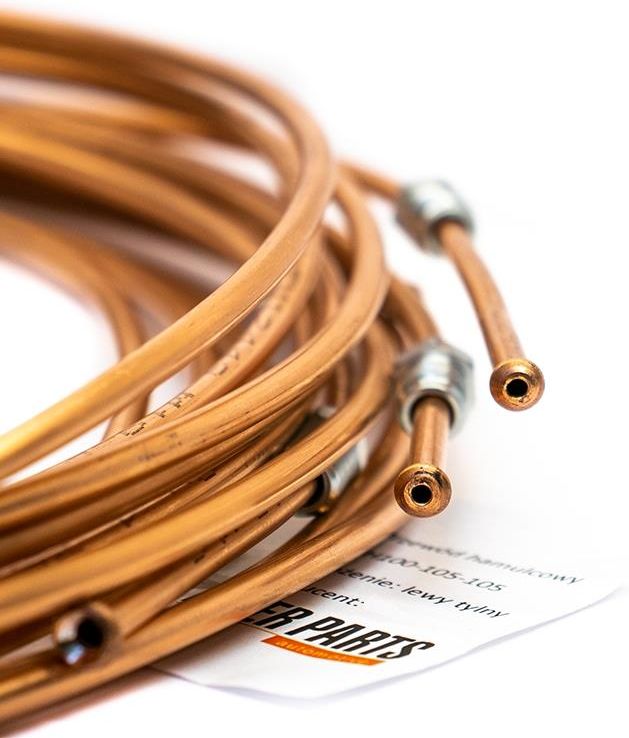 Komplet miedzianych przewodów hamulcowych BMW e39 strona zabudowy TYŁ roczniki 1995-2004 nadwozie touring Po zakupie w celu potwierdzenia odpowiedniej wersji zestawu przewodów hamulcowych prosimy koniecznie podać: numer VIN rodzaj systemu antypoślizgowego ASC+T / ASC / DSC Pamiętaj, że w razie w wątpliwości, nasz specjalista z Działu Technicznego doradzi Ci w sprawie doboru odpowiedniego zestawu przewodów hamulcowych do Twojego samochod Zestaw zawiera miedziane tylne przewody (od pompy ABS do tylnych przewodów elastycznych, wg grafiki) oraz schemat montażowy. Przewody zwinięte w kręgi, wyprodukowane według długości OEM. W modelach BMW e39 w zależności od wersji układu hamulcowego występują również dodatkowe łączenia przewodów hamulcowych. Elementy te są dostępne na innej aukcji. Jako producent przewodów hamulcowych dbamy o najwyższą jakość naszych produktów – potwierdzamy to certyfikatem ISO PN-EN ISO 9001:2015-10 Kraj produkcji: Polska Producent: PiterParts Parametry techniczne / rurka miedziana: średnica zewnętrzna [mm]: 4.76 średnica wewnętrzna [mm]: 2.96 grubość ścianki [mm]: 0.9 norma produkcyjna: EN-12449 materiał: Cu-DHP certyfikat: tak wytrzymałość na rozciąganie: R200 Rurkę miedzianą z jednej strony cechuje wysoka odporność ciśnieniowa, z drugiej natomiast podatność na obróbkę mechaniczną i odporność na korozję zewnętrzną. Końcówki przewodów wykonane są ze stali wysokogatunkowej ocynkowanej. GRATIS - do kompletu przewodów hamulcowych dołączamy płyn hamulcowy DOT-4 0,5L marki PITERPARTS O marce PiterParts Automotive Sztywne miedziane przewody hamulcowe PITERPARTS AUTOMOTIVE produkowane są w Polsce z wysokiej jakości bezszwowej rury miedzianej CuDHP: zgodnej z normą PN-EN 12449 pochodzącą z europejskich hut w składzie 99,9% miedzi Nasze przewody hamulcowe cechuje: łatwy i szybki montaż – stosowana przez Nas w produkcji rurka miedziana jest plastyczna i podatna na profilowanie lub gięcie, co eliminuje konieczność stosowania specjalistycznych narzędzi i łączników. Wskaźnik twardości to R200/R220 gotowość do montażu w samochodzie – przewody hamulcowe posiadają odpowiednie końcówki pod względem rozmiaru i skoku gwintu oraz odpowiednie rodzaje zakuć. Każdy element został wyprodukowany na wymiar i oznaczony zgodnie z miejscem montażu, co znacząco ułatwia i przyspiesza proces instalacyjny bezpieczeństwo – przewody miedziane są wytrzymałe na ciśnienie robocze w układzie hamulcowym, gwarantując bezpieczną i skuteczną pracę. Końcówki przewodów hamulcowych wykonane są z wysokogatunkowej stali ocynkowanej odporność na korozję – miedź jest materiałem odpornym na rdzę i działanie wilgoci, co zapewnia długą żywotność przewodów hamulcowych PiterParts Automotive PL
