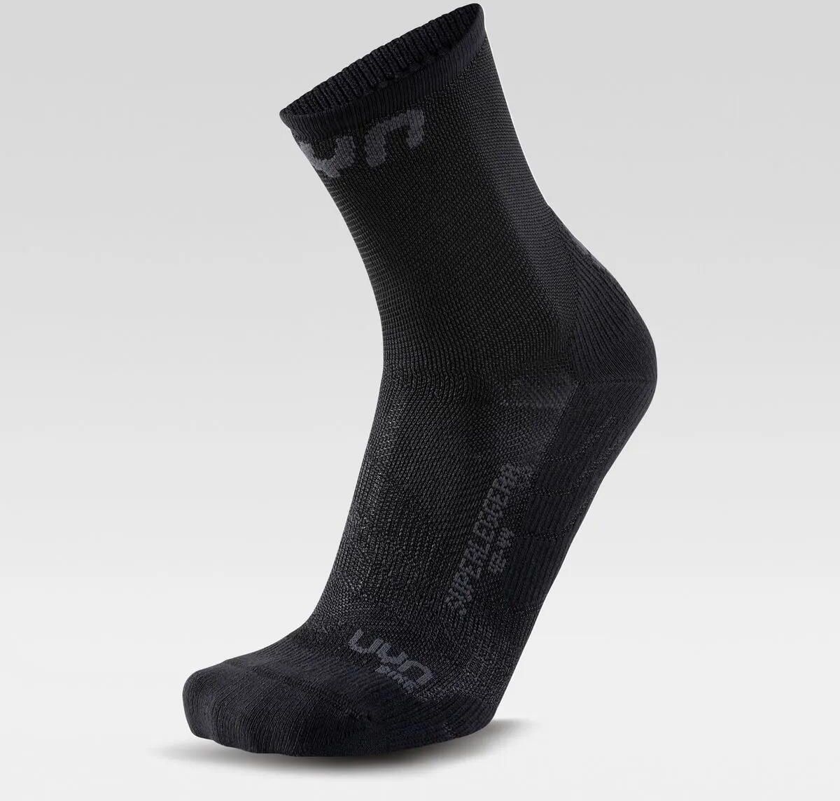 Uyn Superleggera Cycling Socks Męskie Skarpety rowerowe Kod produktu: S100090B026 Rozmiar EU 45- 47 SKŁAD 50% Poliamid 27% Poliester 11% Polipropylen 12% Elasten Skarpetki rowerowe Superleggera firmy UYN® są wyjątkowo lekkie w noszeniu. Dzieje się tak dzięki zastosowaniu materiału Natex, czyli w 100% roślinnego włókna nylonowego, które jest super miękkie i bardzo szybko schnie. Skarpetki te zachwycają dopasowaniem, komfortem noszenia i wysoką oddychalnością w połączeniu z idealną cyrkulacją powietrza. Zastosowane materiały NATEX - jest wyjątkowo lekki i zmniejsza wagę o 25%. Odzież NATEX schnie do 50% szybciej niż porównywalne ubrania nylonowe. W 100% naturalne włókno organiczne jest bardziej elastyczne, a działanie bakteriostatyczne minimalizuje nieprzyjemne zapachy. ZERODOR Przeplatana zwykłą przędzą, zaawansowana srebrna przędza metalowa ZERODOR zapewnia działanie antystatyczne i przeciwbakteryjne. W ten sposób zapobiega tworzeniu się nieprzyjemnych zapachów, nadając odzieży UYN długotrwałe uczucie świeżości i komfortu. Jony srebra ZERODOR są nierozerwalnie zintegrowane z włóknami, gdzie zachowują swoje właściwości, są odporne na pranie i ścieranie. Zastosowane technologie ERGOLOGIC FOOTBED - Anatomicznie ukształtowana wkładka dostosowana do wysiłku sportowego i ruchu. Preshock - Amortyzuje wstrząsy i chroni wrażliwe ścięgno Achillesa dzięki trójwymiarowej dzianinie. Cool Air Flow - Struktura mikrokanałowa 3D zapewniająca cyrkulację powietrza; utrzymuje stopy w suchości i przyjemnej temperaturze. Zero - Strangle - cuff Elastyczne, anatomicznie ukształtowane mankiety zapewniają pewne trzymanie bez ucisku. UYN (Unleash Your Nature) jest innowacyjną marką włoskiego producenta funkcyjnej odzieży dzianej Trerè. Od dziesięcioleci Trerè produkuje najwyższej jakości dzianiny z delikatnych przędz, które są bardzo przyjemne dla ciała, wspierają je oraz zapewniają zrównoważony komfort termiczny. Obojętnie, czy to bielizna, koszulki, skarpety, czy też akcesoria, UYN gwarantuje dobre samopoczucie podczas uprawiania sportu.