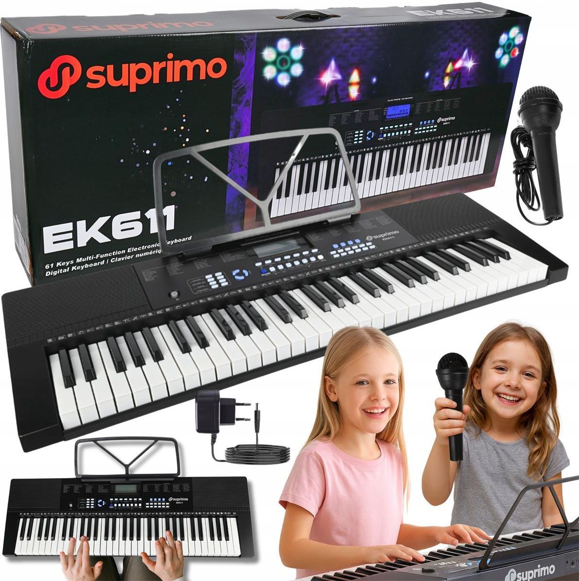 SUPRIMO EK611 Keyboard elektroniczny edukacyjny 61 klawiszy Pulpit do nut Mikrofon przewodowy Suprimo EK611 – keyboard edukacyjny, który rozwinie muzyczne skrzydła Twoje lub Twojego dziecka! Rozpocznij muzyczną przygodę z keyboardem Suprimo EK611, stworzonym z myślą o początkujących i …