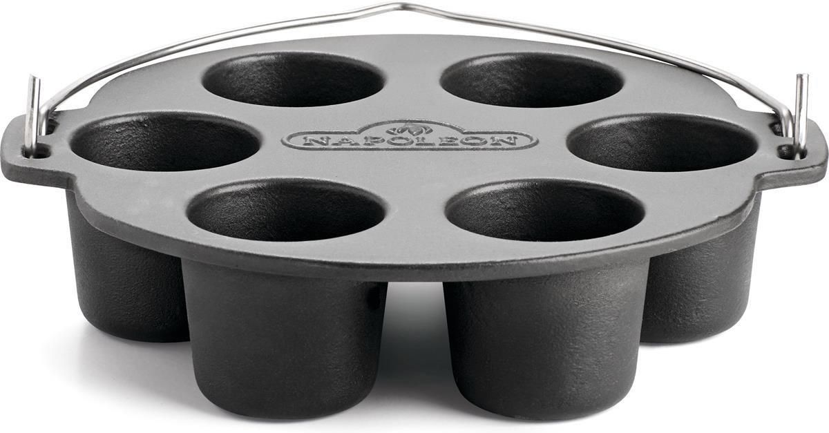 Żeliwna forma do muffinków marki Napoleon została specjalnie zaprojektowana, aby zmieścić się w żeliwnym naczyniu o pojemności 6 litrów, ale równie dobrze sprawdzi się bezpośrednio na rusztach grillowych Napoleon. Emaliowane żeliwo zapewnia łatwą w utrzymaniu, nieprzywierającą powierzchnię. Uchwyt pozwala na łatwe przenoszenie żeliwnego urządzenia do pieczenia muffinek na grilla i z powrotem – pamiętaj tylko o użyciu żaroodpornych rękawic dla bezpieczeństwa. Żeliwo zapewnia równomierne rozprowadzanie i utrzymywanie ciepła, co sprawia, że przygotowane muffiny, w tym popovers i Yorkshire puddings, a także chleb kukurydziany, brownie i ciasteczka są jeszcze smaczniejsze. Cechy i funkcje: • Emaliowana powierzchnia zapewnia nieprzywierające wykończenie. • 6 komór, w których można upiec muffiny, ciasteczka, brownie i wiele innych. • Uchwyt zapewniający łatwe przenoszenie. • Doskonałe zatrzymywanie i rozprowadzanie ciepła w celu równomiernego gotowania.