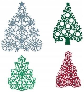 Zestaw wykrojników z motywem świątecznych drzewek. Składa się z 4 elementów przedstawiających ażurowe choinki w różnych rozmiarach i wzorach. Dzięki nim wykonasz oryginalne kartki okolicznościowe, jak i świąteczne dekoracje wnętrz. Ażurowe choinki to fantastyczny dodatek do przestrzennych bombek …