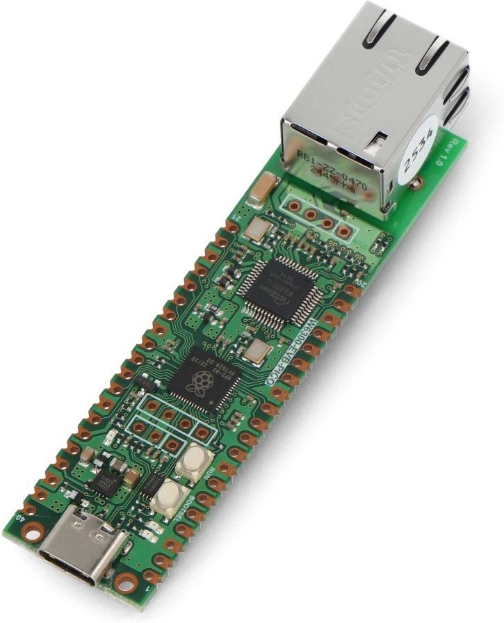 Kompaktowa płytka W6300-EVB-Pico to zaawansowany moduł rozwojowy oparty na mikrokontrolerze RP2040, kompatybilny z Raspberry Pi Pico. Dzięki zintegrowanemu kontrolerowi WIZnet W6300, oferuje pełną obsługę sieci Ethernet 10 / 100 Mb/s z IPv4 / IPv6 oraz ośmioma niezależnymi socketami sprzętowymi - idealny wybór dla projektów IoT, automatyki i szybkiego prototypowania.