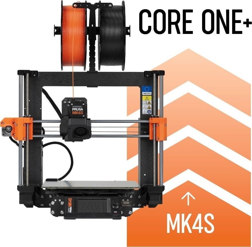 Aktualizacja Prusa CORE One stanowi istotną modernizację do drukarki Original Prusa MK4S. Nowa konstrukcja oparta na stalowym egzoszkielecie zapewnia wyjątkową sztywność i odporność na drgania, a system chłodzenia 360° z ulepszonym Nextruderem gwarantuje perfekcyjne chłodzenie wydruków i lepsze odwzorowanie detali. Po konwersji drukarka oferuje większy obszar roboczy, zamkniętą komorę o temperaturze roboczej do 55°C, a także możliwość pracy z trudniejszymi filamentami.
