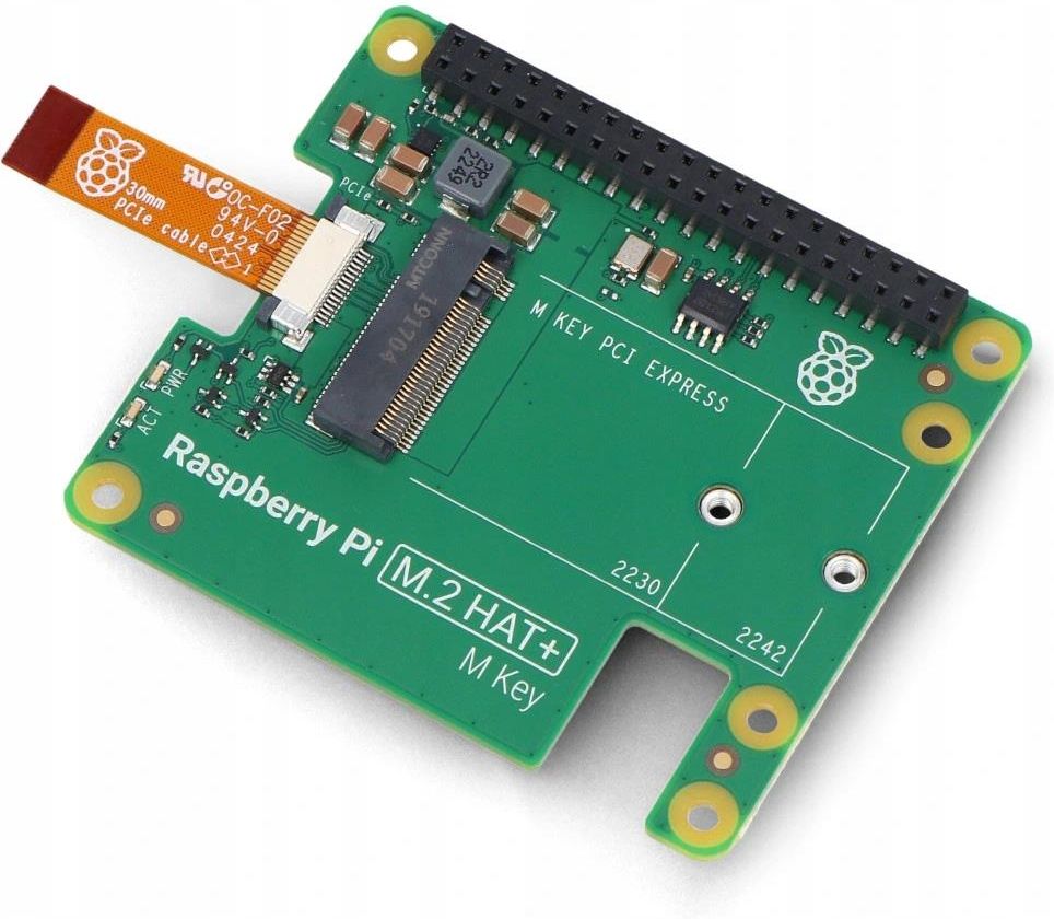 Raspberry Pi M.2 HAT+ - nakładka do dysków NVMe i akcesoriów M.2 do Raspberry Pi 5 Raspberry Pi M.2 HAT+ umożliwia podłączenie urządzeń peryferyjnych M.2, takich jak dyski NVMe i akceleratory AI, do interfejsu PCIe 2.0 w Raspberry Pi 5. Zapewnia szybki transfer danych do 500 MB/s . Obsługuje …
