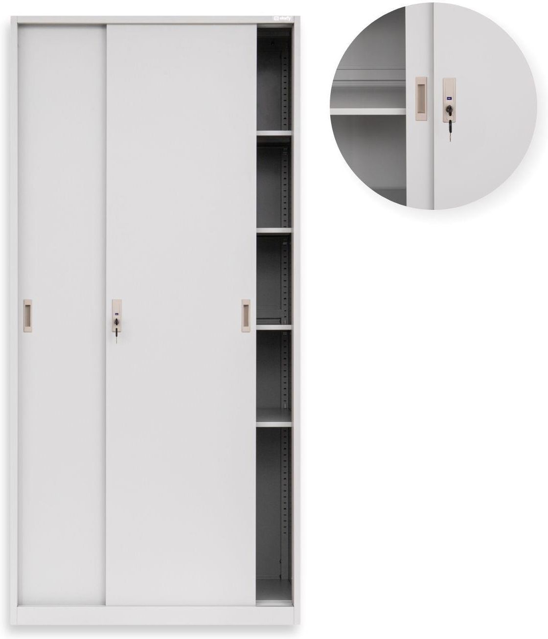 Biurowa szafa metalowa z przesuwnymi drzwiami na klucz Toronto Grey Wołomin