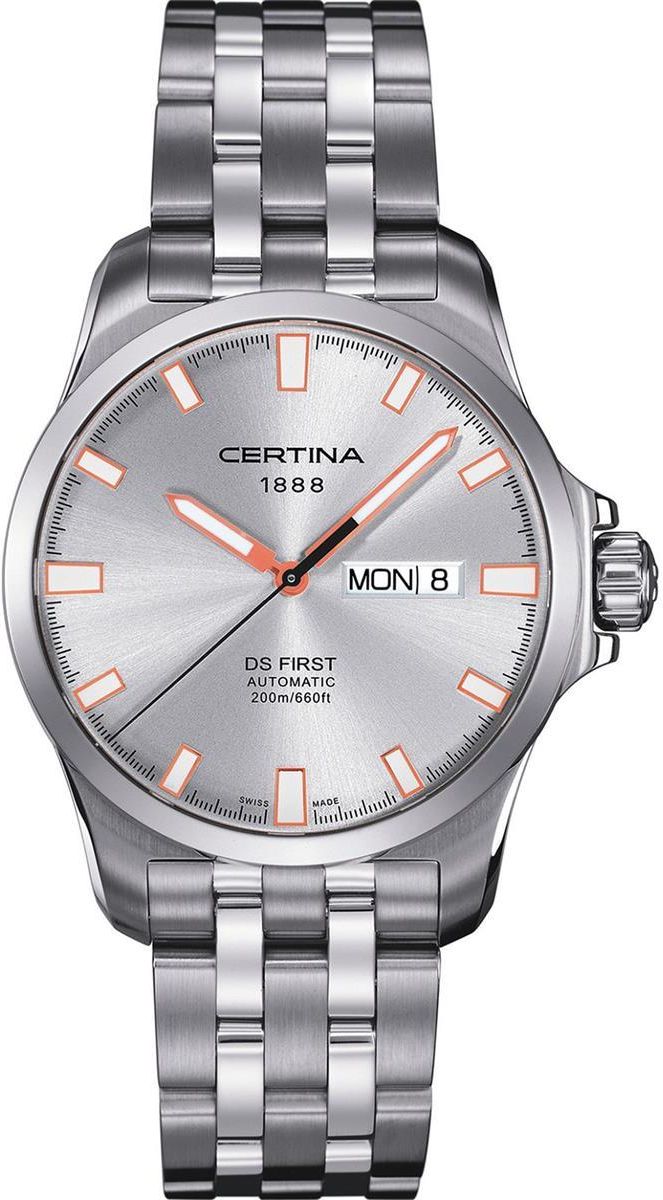 OKAZJA!!! - CENA RYNKOWA TEGO MODELU 640 EUR ZEGAREK JEST NOWY I POSIADA 1 ROK GWARANCJI KOPERTA I MECHANIZM ZEGARKA Koperta zegarka wykonana została ze stali szlachetnej, jest w okrągłym kształcie. Wykonanie z wysokiej jakości stopu antyalergicznej stali szlachetnej 316L zapewnia bezpieczeństwo Twojemu ciału, a stop 316L charakteryzuje się wysoką odpornością na korozję. Czasomierz został wyposażony w tradycyjny mechanizm nakręcany automatycznie (ETA 2836-2) podczas ruchu nadgarstka. Mechanizm automatyczny jest wprawiany w ruch przez wahnik. Ruchy ramienia i nadgarstka poruszają wahnik, który z kolei nakręca sprężynę napędową. Nie jest konieczne zastosowanie żadnej baterii. Dokładność zależy od wykonania mechanizmu, jego pierwotnego ustawienia, a także od użytkownika zegarka. SZKIEŁKO SZAFIROWE I TARCZA Tarcza jest jasna, chroni ją niezwykle twarde, najwyższej klasy odporne na zarysowania szkło szafirowe, szkło zostało dodatkowo pokryte powłoką antyrefleksyjną, która poprawia czytelność zegarka w słoneczne dni oraz przy mocnym natężeniu światła eliminując refleksy. Szkło produkowane w oparciu o wysokiej jakości tlenek glinu, odporne na zarysowania; siedem razy twardsze niż stal (twardość: 2200 - 2300 w skali Vickersa), bardzo trudne do zarysowania. • Godziny na tarczy oznaczone są poprzez klasyczne indeksy. • Zastosowany rodzaj szkła - szafirowe. BRANSOLETA Oryginalny uniwersalny zegarek męski oferowany jest na bransolecie wykonanej ze stali szlachetnej. Produkt posiada bransoletę w kolorze srebrnym/stalowym. Wykonana z wysokiej jakości stopu antyalergicznej stali szlachetnej 316L bransoleta zapewnia bezproblemowe i bezpieczne użytkowanie zegarka przez bardzo długi czas. Bransoleta może zostać dopasowana do obwodu Twojego nadgarstka przed wysyłką. Stop 316L charakteryzuje się wysoką odpornością na korozję. FUNKCJE I POZOSTAŁE CECHY ZEGARKA Ten model zegarka Certina wyposażono w takie funkcje jak: Datownik - datownik wskazuje użytkownikowi w sposób elektroniczny lub analogowy aktualną datę. Jeśli zegarek posiada wieczny datownik nigdy nie trzeba korygować jego ustawień daty. Fluorescencyjne indeksy na tarczy - pokryte substancją typu SuperLuminova lub inną indeksy ułatwiają odczytanie godziny w warunkach złego oświetlenia lub jego braku po uprzednim naświetleniu zegarka światłe słonecznym. Fluorescencyjne wskazówki - pokryte substancją typu SuperLuminova lub inną wskazówki ułatwiają odczytanie wskazań zegarka w warunkach złego oświetlenia lub jego braku po uprzednim naświetleniu zegarka światłe słonecznym. Powłoka antyrefleksyjna - powłoka antyrefleksyjna występuje w zegarkach wysokiej klasy i jest nakładania w dwóch wariantach (1-warstwowa i 2-warstwowa) na szkła szafirowe. Jej zastosowanie pozwala wyeliminować wszelkie refleksy na tarczy zegarka i ułatwia odczyt jego wskazań w słoneczny dzień, dodatkowo sprawia wrażenie, jak gdyby zegarek nie posiadał szkła (jeśli jest ono czyste). Wskaźnik dnia tygodnia - znacznik dnia tygodnia wyświetla na tarczy zegarka aktualny dzień tygodnia w formacie skróconym zwykle w formie skrótu nazwy danego dnia tygodnia w języku angielskim. DS - podwójne zabezpieczenie mechanizmu - system DS (Double Security) to opatentowane przez firmę Certina dodatkowe zabezpieczenie mechanizmu przed kontaktem z wodą i wilgocią możliwe dzięki zastosowaniu dodatkowych uszczelek przy kopercie oraz koronce zegarka, które bardzo skutecznie zatrzymują wodę i pozwalają zegarkom z DS gwarantować wodoszczelność przez długi czas. WYMIARY ZEGARKA Całkowita waga zegarka wynosi 170 g i czyni zegarek masywnym i solidnym. Zegarek ma grubość - 11,95 mm - co sprawia, iż wygląda niezwykle solidnie. Typowa szerokość (40,33 mm) sprawia, iż jest to dobry wybór na co dzień. WODOSZCZELNOŚĆ ZEGARKA Wodoszczelność równa 20 atmosfer tj. 200 m jest jedną z cech tego zegarka. Klasa wodoszczelności 20 atm pozwala na swobodne zachlapywanie zegarka wodą, wejście pod prysznic, kąpiel na powierzchni wody, nurkowanie z rurką, nurkowanie z butlą na średnich głębokościach. Koperta: stal nierdzewna Mechanizm: szwajcarski, automatyczny Tarcza: srebrna Średnica: 41mm (bez korony) Szkło: Kryształ szafirowy Pasek: oryginalny pasek ze stali nierdzewnej Rozmiar nadgarstka: 21 cm Stan: nowy, nieużywany.