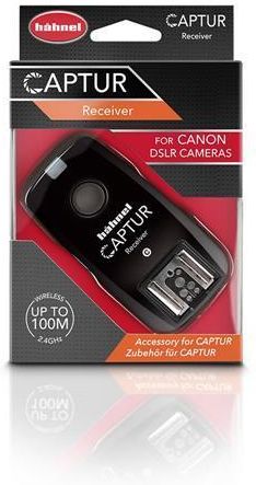 Hähnel Captur Additional Receiver Canon Dodatkowy odbiornik systemu bezprzewodowego wyzwalania Hahnel Captur. Captur to bardzo uniwersalne narzędzie mogące pracować w różnych konfiguracjach dających odmienne funkcje. Istnieje też możliwość rozbudowy systemu Captur o inne akcesoria (moduł Timer, moduł Pro).Dodatkowy odbiornik jest przydatny, gdy chcemy wyzwolić kilka lamp błyskowych (należy wyposażyć się w tyle odbiorników, ile lamp zamierzamy wyzwalać). O systemie Hahnel Captur Hahnel Captur to urządzenie łączące dwie funkcjonalności: zdalne wyzwalanie migawki aparatu oraz zdalne wyzwalanie lamp błyskowych. Jest to bardzo uniwersalne narzędzie, gdyż może pracować w różnych konfiguracjach dających odmienne funkcje. Istniej też możliwość rozbudowy systemu Captur o inne akcesoria (dodatkowe odbiorniki, moduł Timer, moduł Pro). Nadajnik łączy się z odbiornikiem drogą radiową, dzięki czemu zasięg wynosi aż 100 m, a połączenie jest bardzo stabilne i nie ma problemu z zakłóceniami przez przedmioty znajdujące się pomiędzy nadajnikiem a odbiornikiem, jak ma to miejsce w przypadku pilotów na podczerwień. Captur ma jeszcze jedną, bardzo ważną, zaletę nad pilotem na podczerwień: działa on w dowolnym trybie migawki ustawionym w aparacie, gdyż podpinany jest do gniazda wężyka spustowego, podczas gdy zwykły pilot działa tylko w jednym trybie - w trybie "pilot". Wybieramy go spośród ustawień wyzwalania migawki, dlatego nie możemy wybrać dodatkowo np. zdjęć seryjnych, co w przypadku systemu Captur jest możliwe.
