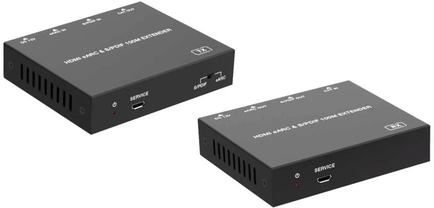 Przedłużacz sygnału audio optycznego i HDMI eARC do 100 m przez kabel CAT Obsługuje wysokiej jakości formaty dźwięku, włącznie z Dolby Atmos (przez eARC) Posiada przełącznik trybu audio: optyczne / eARC Posiada dwukierunkową transmisję zasilania PoC. HDC-EDA100SEA — Extender sygnału audio optycznego lub HDMI eARC po skrętce CAT6/6a/7 do 100m Profesjonalne rozwiązanie do transmisji audio w instalacjach AV i systemach multiroom HDC-EDA100SEA to kompaktowy przedłużacz audio, umożliwiający transmisję sygnału audio optycznego (S/PDIF) lub HDMI eARC na odległość do 100 metrów za pomocą jednego kabla skrętkowego CAT. Urządzenie obsługuje wysokiej jakości formaty dźwięku, funkcję CEC wymaganą do ustanowienia transmisji eARC oraz dwukierunkową transmisję zasilania PoC. Idealne rozwiązanie do integracji audio w profesjonalnych instalacjach AV, salach konferencyjnych czy systemach audio w domu. Uwaga: HDMI eARC to sygnał wyłącznie audio — umożliwia podłączenie wyjścia TV oznaczonego jako HDMI eARC poprzez długą skrętkę do soundbara z wejściem HDMI eARC (np. Sonos) albo do amplitunera z wejsciem (wyjściem) HDMI eARC. Extender nie obsługuje wideo HDMI, tylko audio eARC. Produkt posiada niezależny kanał transmisji dźwięku S/PDIF. W danej chwili działa tylko jeden tor audio: albo optyczny (S/PDIF), albo eARC. Cechy Zasięg transmisji: do 100 m (328 ft) przez jeden kabel CAT6/6a/7 Obsługiwane formaty audio: eARC: PCM 2.0/5.1/7.1, DD, DD+, DTS, Dolby TrueHD, DTS-HD MA, Dolby Atmos ARC: PCM 2.0, Dolby 5.1, DTS 5.1 S/PDIF: PCM 2.0, Dolby 5.1, DTS 5.1 Przełącznik trybu audio: wybór między dźwiękiem optycznym a HDMI eARC Dwukierunkowa funkcja PoC (Power over Cable): zasilanie odbiornika przez nadajnik lub odbiornik Plug & Play: szybka i bezproblemowa instalacja Kompaktowa, metalowa obudowa: odporna na zakłócenia i łatwa do montażu Przykładowe zastosowania Przesył dźwięku z telewizora do wzmacniacza lub soundbara w dużej odległości Integracja sygnału audio z wielu źródeł w instalacjach AV Przedłużenie dźwięku w profesjonalnych systemach konferencyjnych Rozwiązania audio dla systemów multiroom i domowych kin