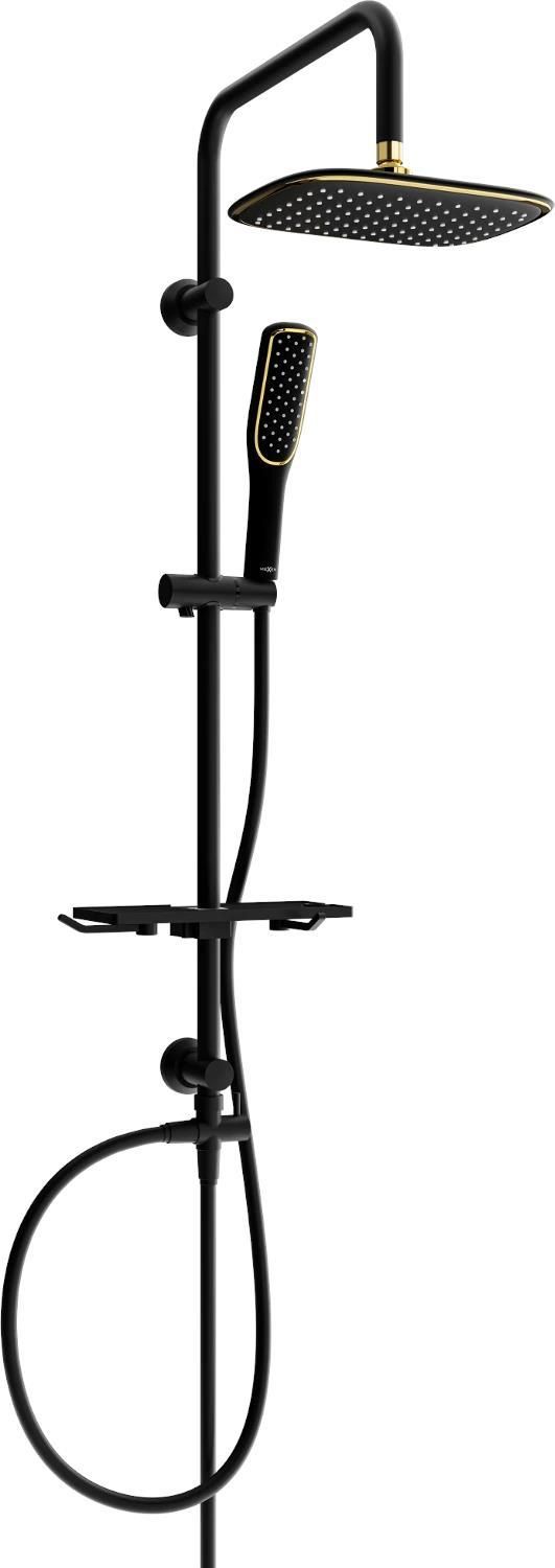 Mexen T49 kolumna prysznicowa z regulowanym uchwytem, wężem, deszczownicą, rączką oraz mydelniczką, czarny/złoty Producent: Mexen Seria: T49 Kod produktu: 798494993-75 Dane techniczne Materiał kolumny: Stal nierdzewna, ABS Wykończenie kolumny: Czarny Wysokość: 950 mm Szerokość kolumny: 22 mm …