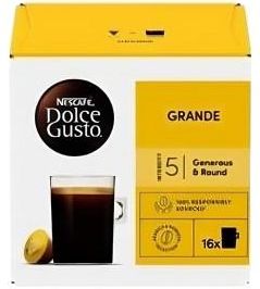Odkryj NESCAFÉ® Dolce Gusto® Grande Extra Crema, kawę z owocowymi nutami, okrągłym body i delikatną cremą. Utalentowani twórcy z NESCAFÉ® Dolce Gusto® połączyli kawę ziarnistą z Brazylii i Wietnamu, uzyskując naprawdę wyjątkowy, świeży i owocowy smak kawy NESCAFÉ® Dolce Gusto® Grande Extra Crema.Przygotuj kawę profesjonalnej jakości, używając ekspresu na kapsułki "NESCAFÉ® Dolce Gusto®" o maksymalnym ciśnieniu 15 barów. Kawa zachowuje świeżość dzięki hermetycznym kapsułkom, dlatego możesz cieszyć się kawą o bogatym aromacie za każdym razem. Właściwości:- Kawa o intensywności 5 na 11. Najlepiej podawać w długiej szklance (o pojemności 200 ml).- Aromat świeżo palonej kawy z nutami owocowymi przypominającymi bergamotkę. Gładka kawa o okrągłym body i delikatnej cremie.- Mieszanka kawy ziarnistej z Brazylii i Wietnamu.- Świeżość kawy jest zachowana dzięki hermetycznie zamkniętym kapsułkom, specjalnie wykonanym dla ekspresów do kawy NESCAFÉ® Dolce Gusto®, dzięki czemu możesz cieszyć się bogatym aromatem kawy za każdym razem.- 16 kapsułek na 16 porcji kawy NESCAFÉ® Dolce Gusto® Grande Extra Crema.Składniki:Palona kawa mielona.