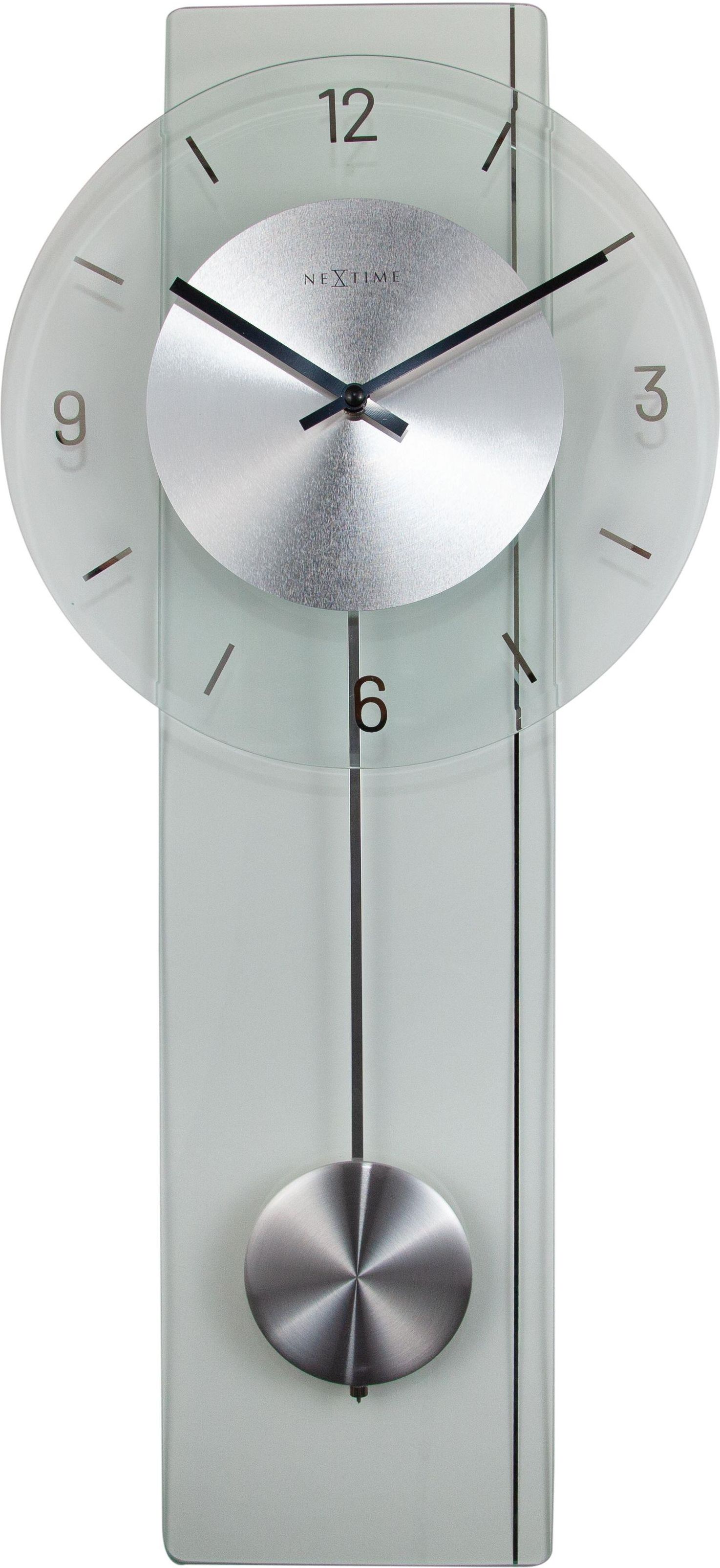 Efektowny zegar ścienny 3251 "Eleanor", holenderskiej marki NeXtime, wyposażony jest w mechanizm zasilany za pomocą baterii typu AA. Duży zegar wykonany jest z transparentnego szkła. Wyposażony jest w ruchome wahadło. Dzięki swojemu ponadczasowemu designowi z łatwością wkomponuje się w większość wnętrz – zarówno przestrzeni mieszkalnych jak i biurowych. Mleczne szkło okrągłej tarczy i panelu tworzą elegancki, klasyczny wygląd. Dzięki użyciu szkła, projekt jest lekki i przyjemny dla oka. Świetny pomysł na niezobowiązujący prezent. Zegary Nextime to nie tylko praktyczne odmierzanie czasu ale i atrakcyjny, przykuwający wzrok element dekorujący wnętrze. Ciekawy pomysł, materiał, jakość wykonania, kolorystyka i dynamika projektu - to wszystko może staje się istotnym elementem stylu w danej przestrzeni. Zegar ścienny, 70 x 30 cm, transparentny, szkło, metal