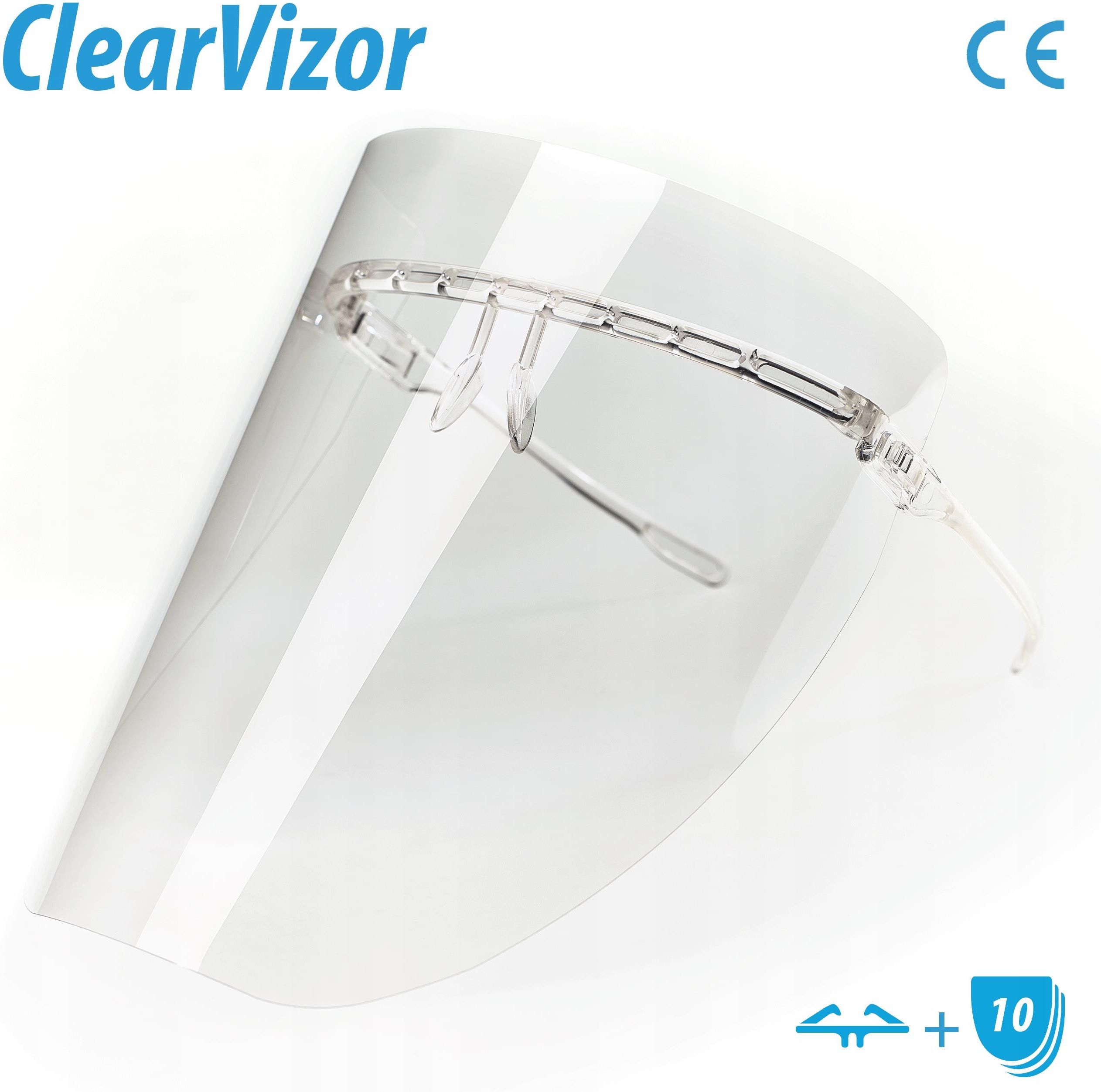 Przyłbica ochronna ClearVizor© - w zestawie oprawki w kolorze transparentnym bezbarwnym (1 szt.) i folie ochronne wzór A1 (10 szt.). Najlżejsza i najbardziej komfortowa przyłbica na rynku. Z zamontowaną folią ochronną waży tylko 15 g. Oprawki ClearVizor© są wykonane z lekkiego, trwałego materiału. Ich konstrukcja umożliwia używanie z okularami optycznymi. Zintegrowane klipsy umożliwiają szybką wymianę folii ochronnych. Folie ochronne ClearVizor© są wykonane z cienkiego poliwęglanu o najwyższej możliwej jakości i przejrzystości. Są fabrycznie zabezpieczone obustronnie przed uszkodzeniem podczas transportu i przechowywania. Można je używać z większością dostępnych na rynku oprawek innych producentów. Do zastosowania w gabinetach stomatologicznych i kosmetycznych oraz w laboratoriach. Ich podstawowym zadaniem jest ochrona twarzy i oczu przed odpryskami, pyłem i chemią, ale nie bez znaczenia jest także zabezpieczenie przed czynnikami chorobotwórczymi przenoszonymi drogą kropelkową.