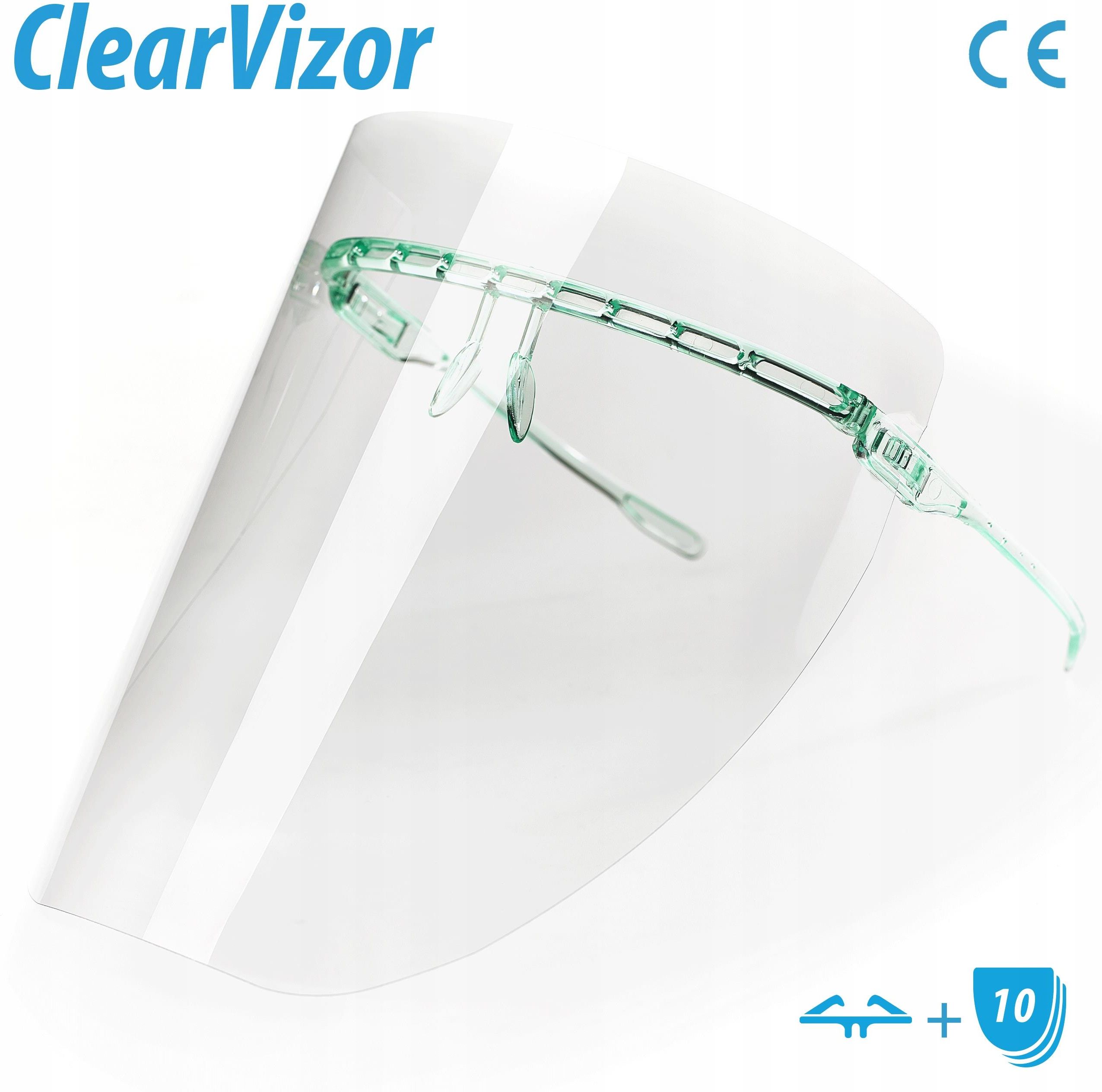 Przyłbica ochronna ClearVizor© - w zestawie oprawki w kolorze jasnozielonym transparentnym (1 szt.) i folie ochronne wzór A1 (10 szt.). Najlżejsza i najbardziej komfortowa przyłbica na rynku. Z zamontowaną folią ochronną waży tylko 15 g. Oprawki ClearVizor© są wykonane z lekkiego, trwałego materiału. Ich konstrukcja umożliwia używanie z okularami optycznymi. Zintegrowane klipsy umożliwiają szybką wymianę folii ochronnych. Folie ochronne ClearVizor© są wykonane z cienkiego poliwęglanu o najwyższej możliwej jakości i przejrzystości. Są fabrycznie zabezpieczone obustronnie przed uszkodzeniem podczas transportu i przechowywania. Można je używać z większością dostępnych na rynku oprawek innych producentów. Do zastosowania w gabinetach stomatologicznych i kosmetycznych oraz w laboratoriach. Ich podstawowym zadaniem jest ochrona twarzy i oczu przed odpryskami, pyłem i chemią, ale nie bez znaczenia jest także zabezpieczenie przed czynnikami chorobotwórczymi przenoszonymi drogą kropelkową.