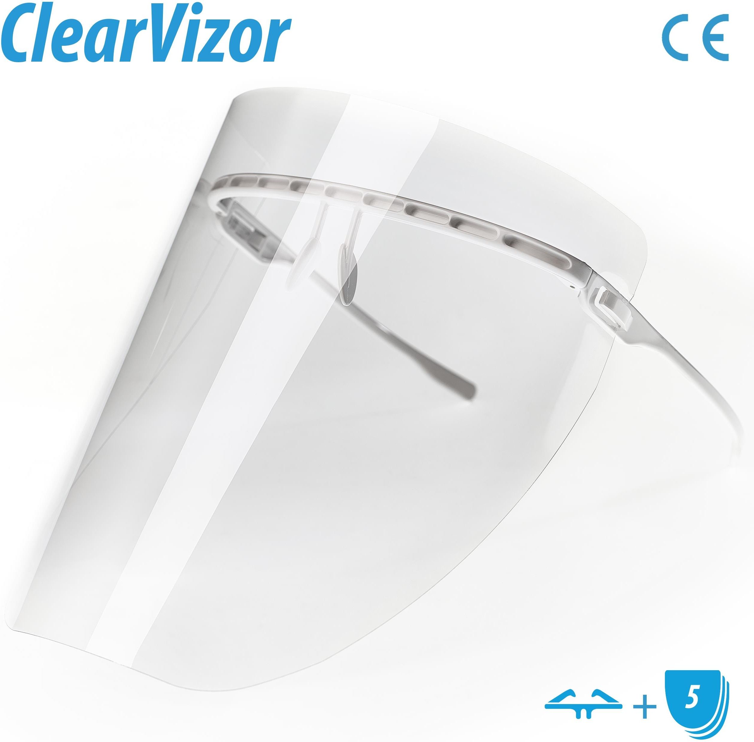 Przyłbica ochronna ClearVizor© - w zestawie oprawki w kolorze białym pełnym (1 szt.) i folie ochronne (5 szt.). Najlżejsza i najbardziej komfortowa przyłbica na rynku. Z zamontowaną folią ochronną waży tylko 15 g. Oprawki ClearVizor© są wykonane z lekkiego, trwałego materiału. Ich konstrukcja umożliwia używanie z okularami optycznymi. Zintegrowane klipsy umożliwiają szybką wymianę folii ochronnych. Folie ochronne ClearVizor© są wykonane z cienkiego poliwęglanu o najwyższej możliwej jakości i przejrzystości. Są fabrycznie zabezpieczone obustronnie przed uszkodzeniem podczas transportu i przechowywania. Można je używać z większością dostępnych na rynku oprawek innych producentów. Do zastosowania w gabinetach stomatologicznych i kosmetycznych oraz w laboratoriach. Ich podstawowym zadaniem jest ochrona twarzy i oczu przed odpryskami, pyłem i chemią, ale nie bez znaczenia jest także zabezpieczenie przed czynnikami chorobotwórczymi przenoszonymi drogą kropelkową.