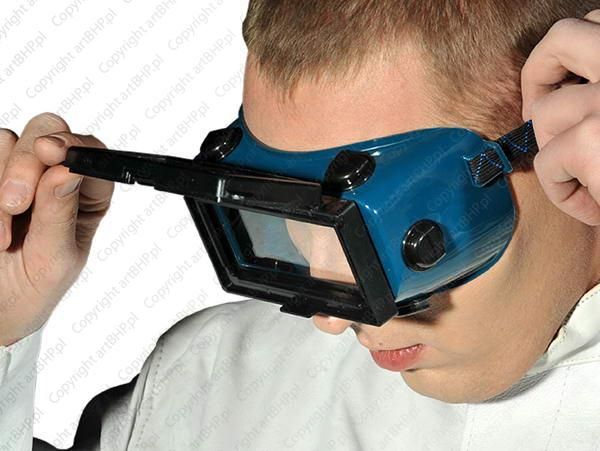 Gogle spawalnicze z prostokątną szybką. - jedna szklana soczewka o stopniu zaciemnienia 5 oraz dwie poliwęglanowe soczewki - 1 klasa optyczna szybek ochronnych zamontowanych z dwóch stron filtra - rozmiar szybki 10,8x5 cm - odchylane filtry optyczne z dużymi uchwytami zapewniają dodatkową wygodę - elastyczny pasek mocujący z możliwością regulacji - przeznaczone do ochrony wzroku i części twarzy przed szkodliwym promieniowaniem i zgorzeliną przy spawaniu oraz przy przecinaniu łukiem elektrycznym - zapewniają ochronę przed małymi odpryskami ciał stałych o energii uderzeń do 45 m/s (F) - spełniają wymagania norm EN175, EN166 oraz EN169