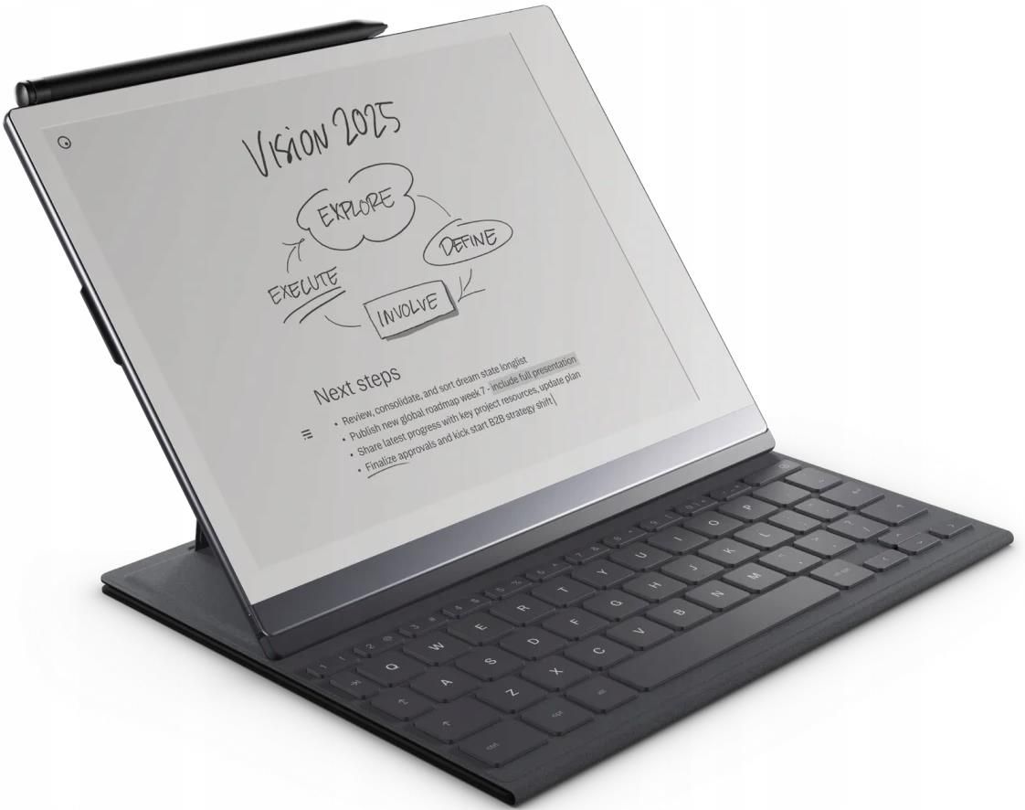 Type Folio - Oryginalne Skórzane Etui z klawiaturą do reMarkable 2 Type Folio Ink Black – idealne akcesorium do pisania na reMarkable 2 Skoncentruj się na pisaniu Type Folio to połączenie eleganckiego, smukłego etui z funkcjonalnością klawiatury zaprojektowanej z myślą o wygodzie. Dzięki brakowi kabli i konieczności ładowania, pisanie staje się płynne i wolne od zakłóceń – w sam raz dla tych, którzy cenią sobie pełne skupienie podczas pracy. Czy można pisać tekst na reMarkable bez klawiatury? Tak, możesz korzystać z wirtualnej klawiatury, aby dodawać tytuły, tworzyć listy punktowane lub wprowadzać drobne poprawki. Jednak Type Folio znacznie ułatwia pisanie dłuższych treści, zapewniając komfort dzięki pełnowymiarowym klawiszom i dotykowemu doświadczeniu. Czy Type Folio posiada miejsce na Marker? Tak, podobnie jak w przypadku Book Folio, w Type Folio przewidziano dedykowane miejsce na Marker. Możesz go łatwo przypiąć po prawej stronie tabletu – zawsze w zasięgu ręki, gdy piszesz lub tworzysz notatki, a jednocześnie dyskretnie schowany, gdy czytasz lub jesteś w podróży. Czy Type Folio współpracuje z innymi tabletami? Nie, Type Folio zostało zaprojektowane wyłącznie dla reMarkable 2. To jedyna klawiatura fizyczna w pełni kompatybilna z tym tabletem i jego oprogramowaniem. Dlaczego warto wybrać Type Folio? Ergonomiczne ustawienie: Możliwość ustawienia tabletu w pozycji pionowej do pisania lub niemal płaskiej do ręcznych notatek. Hybryda pisania: Twórz notatki w marginesach, szkicuj między akapitami lub podkreślaj tekst Markerem podczas pisania na klawiaturze. Praca w dowolnym miejscu: Synchronizuj swoje notatki między urządzeniami dzięki aplikacjom na komputery i smartfony, by kontynuować pracę gdziekolwiek jesteś. Dodatkowe zalety Automatyczne obracanie ekranu przy otwieraniu klawiatury. Inteligentne dopasowanie adnotacji do edytowanych tekstów. Brak konieczności używania kabli, parowania czy ładowania. Specyfikacja techniczna Wymiary i waga: 198 x 246 x 6,6 mm, 453 g. Skok klawiszy: 1,3 mm – komfortowy, porównywalny do laptopów. Materiał etui: Wysokiej jakości sztuczna skóra. Łączność: Magnetyczne mocowanie bez potrzeby ładowania czy parowania. Standard klawiatury: Angielski (US). Kolor: Czarny Type Folio to doskonałe rozwiązanie dla osób szukających niezawodnego akcesorium, które zapewnia wygodę, elegancję i pełną integrację z reMarkable 2, oddając w Twoje ręce idealne narzędzie do pracy bez zakłóceń.