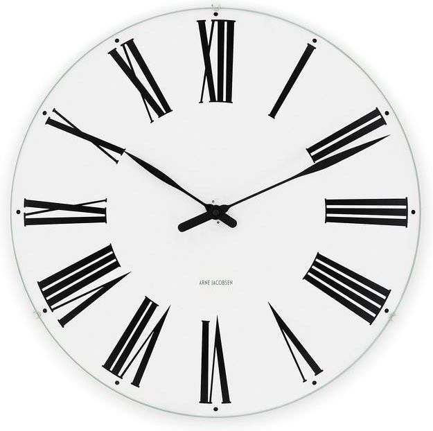 Zegar Roman duńskiej marki Rosendahl. Zegar jest projektem Arne Jacobsena z 1942 roku dla ratusza w Aarhaus. Klasyczny styl podkreślają rzymskie cyfry, a dokładne odmierzanie czasu gwarantuje japoński mechanizm Rhytme. Produkt został wykonany z wysokiej jakości wytrzymałych materiałów. Zegar można obejrzeć również na znajdującym się u dołu strony krótkim filmie. Zegar występuje w różnych rozmiarach. Materiał: aluminium, szkło mineralne Kolor: biały, czarny Średnica: 21 cm Waga: 0.8 kg Zasilanie: baterie AA 1,5 V Projekt: Arne Jacobsen, Rosendahl
