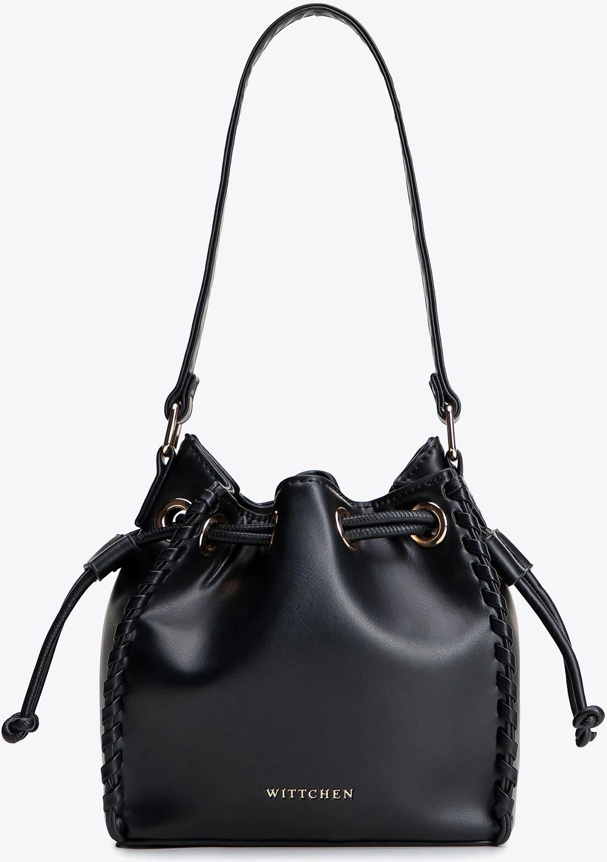 Torebka worek z imitacji skóry z dekoracyjną plecionką czarna Wołomin