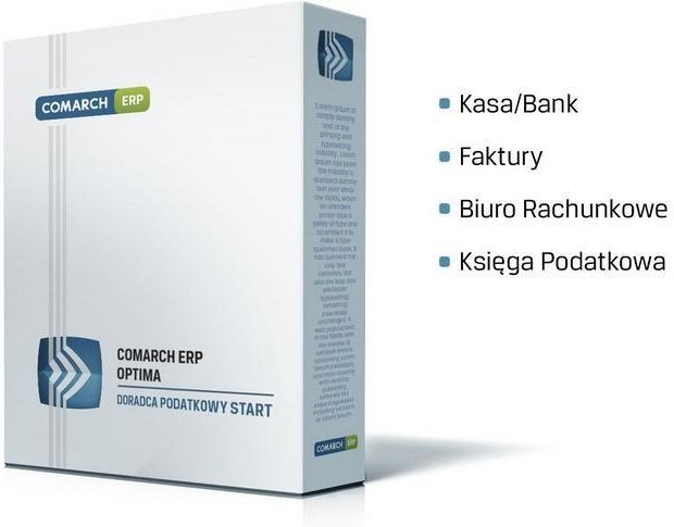 Pakiety dla biur rachunkowych z linii Comarch OPT!MA Doradca Podatkowy stanowi specjaln ofert dla firm. ktre zawodowo zajmuj si obsug rachunkow podmiotw gospodarczych. Korzystajc z programu mona prowadzi peny zakres usug ksigowych dla przedsibiorstw i osb fizycznych. Dodatkowo Comarch OPT!MA wspomaga codzienn prac waciciela biura. sprzeda usug. planowanie prac oraz rozliczanie pracownikw. Wrd pakietw promocyjnych. kade biuro znajdzie waciwy dla siebie. Comarch OPT!MA Doradca Podatkowy START to produkt dedykowany biurom rachunkowym. ktre wiadcz swoje usugi dla firm i osb fizycznych prowadzcych ksigowo w sposb uproszczony (ksiga przychodw i rozchodw) oraz na zasadzie ewidencji ryczatowej. Modu Biuro Rachunkowe skutecznie usprawnia organizacj pracy biura. dziki zarzdzaniu i kontroli zada oraz ewidencji postpu procesu rozliczania klienta. narzdzie analizy rentownoci obsugi klienta oraz efektywnoci pracownikw. Obsug baz danych klientw optymalizuj operacje seryjne. Modu Kasa/Bank usprawnia analiz i prognozowanie przepyww finansowych oraz ich windykacj. Elektroniczna wymiana danych z bankiem przyspiesza proces rozlicze patnoci. Dodatkowo Uytkownik otrzymuje atwy w obsudze modu fakturujcy do prowadzenia sprzeday usug wasnych. Comarch OPT!MA Doradca Podatkowy START zawiera: * Comarch OPT!MA Ksiga Podatkowa w wersji dla biur rachunkowych * Comarch OPT!MA Faktury * Comarch OPT!MA Kasa/Bank * Comarch OPT!MA Biuro Rachunkowe * 12 miesiczna gwarancja i Comarch ASYSTA * komplet podrcznikw w formie elektronicznej * modu zabezpieczajcy MemoHasp na USB