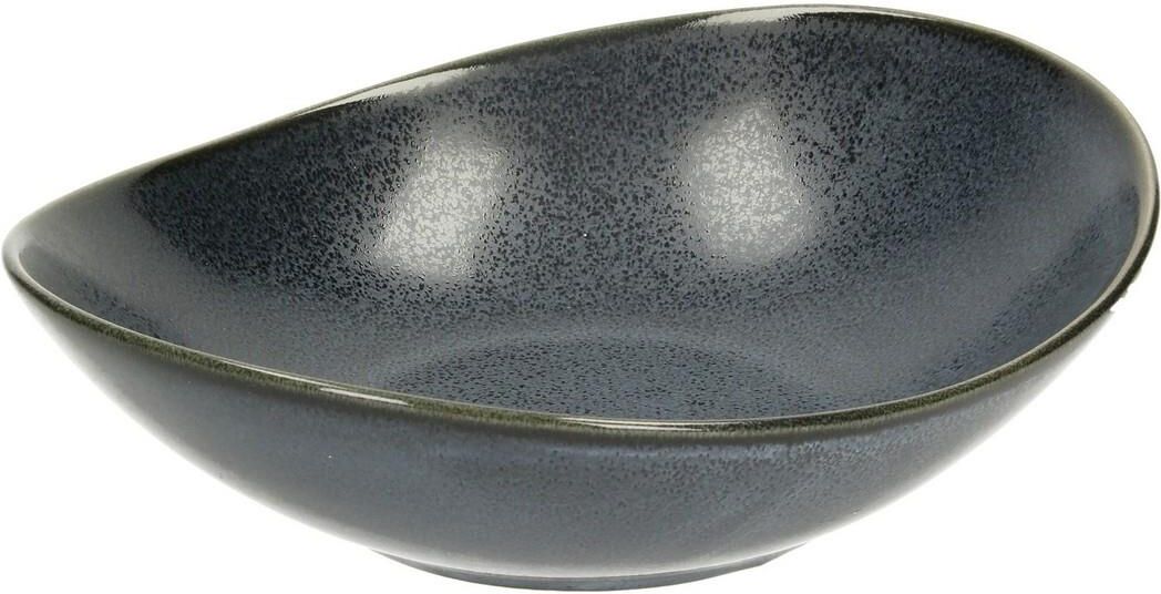 Głęboki talerz z porcelany w ciemnoniebieskim kolorze. Głęboki porcelanowy talerz przykuwa wzrok prostym, a zarazem nietuzinkowym designem. Nieregularny kształt, lekko przydymiony ciemnoniebieski kolor, matowe wykończenie i subtelnie zaznaczona linia rantu sprawiają, że efektownie się prezentuje. Talerz Della doskonale nadaje się do serwowania zup czy ciepłych posiłków w niezwykle stylowej formie. Seria Della to oryginalna porcelana wykonana ręcznie o wysublimowanym charakterze. Urzeka swoją oryginalną estetyką z efektem szkliwa. Wspaniale zaprezentuje się z innymi naczyniami z tej samej kolekcji. Uwaga: talerze mogą nieznacznie różnić się od siebie kształtem i kolorem, co jest ich naturalną cechą. Wymiary: szer. 22,5 cm, dł. 19 cm, wys. 4,8-6 cm.Materiał: porcelana.Dodatkowe informacje: produkt nadaje się do mycia w zmywarce i używania w kuchence mikrofalowej.
