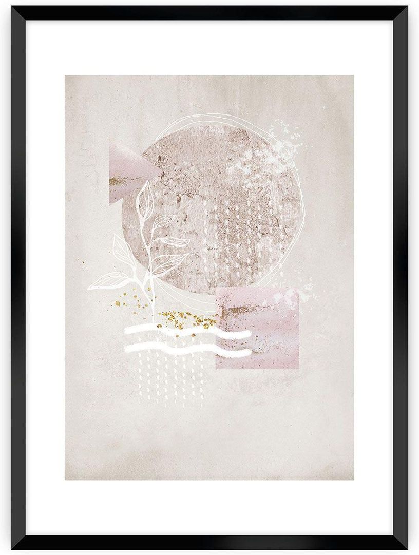 Plakat z graficzną ilustracją z abstrakcyjnymi kształtami w odcieniach beżu i różu. Plakat został oprawiony w białą, wbudowaną ramę z passe partout.Sztuka abstrakcyjna ma tą zaletę, że można ją interpretować w całkowicie dowolny sposób. Abstrakcyjne dzieła są nieodłącznym elementem stylowych aranżacji wnętrz.Grafika wydrukowana została na papierze satynowym bez połysku o gramaturze 200g. Plakat można kupić bez ramki, jednak dla uzyskania lepszego efektu dobierz pasującą ramkę. Pozwoli Ci to na stworzenie kompletnej galerii na ścianie. W naszej ofercie posiadamy ramki w kolorze: białym, czarnym, srebrnym i złotym.Ramki dostępne są w pięciu rozmiarach. Rozmiary 21x30cm, 30x40cm, 40x50cm wykonane są z tworzywa sztucznego. Rozmiary 50x70cm i 70x100cm wykonane są z aluminium.
