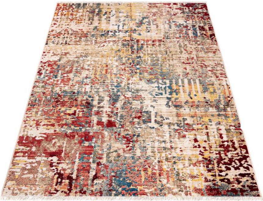 Dywan Rivo 00.18a beige z kolekcji Rivo to prawdziwe dzieło sztuki, które zachwyca swoją głębią i różnorodnością kolorów. Dominującym kolorem jest beż, który tworzy harmonijną bazę dla całego wzoru. Beżowe tło jest subtelnie przeplatane różnymi odcieniami, które dodają dywanowi dynamiki i charakteru. Wśród kolorów dodatkowych wyróżniają się czerwienie, brązy, błękity oraz żółcie, które tworzą intrygujący kontrast i nadają dywanowi wyrazistości. Wzór dywanu jest abstrakcyjny, przypominający impresjonistyczne malowidło, gdzie kolory mieszają się ze sobą w sposób nieregularny, tworząc efekt rozmycia i głębi. Kształt dywanu jest klasycznie prostokątny, co sprawia, że jest uniwersalny i łatwy do wkomponowania w różne przestrzenie. Dodatkowym atutem są frędzle na krótszych bokach, które dodają dywanowi rustykalnego uroku. Wyobraź sobie wnętrze, w którym dywan Rivo 00.18a beige staje się centralnym punktem aranżacji. W salonie, gdzie ściany są w neutralnych odcieniach szarości lub bieli, dywan ten wprowadzi ciepło i życie. Możesz zestawić go z meblami w stylu vintage, gdzie drewniane elementy i skórzane obicia będą pięknie współgrać z kolorystyką dywanu. Dodaj kilka poduszek w odcieniach czerwieni i błękitu, aby podkreślić kolory z dywanu. W sypialni, dywan ten może leżeć pod łóżkiem, tworząc przytulną atmosferę, szczególnie jeśli pościel będzie w podobnej palecie barw. W biurze, gdzie potrzebujesz odrobiny inspiracji, dywan ten może stać się źródłem kreatywności, otaczając Twoje biurko i dodając wnętrzu artystycznego sznytu. Dywan Rivo 00.18a beige to wybór dla osób, które cenią sobie niebanalne wzornictwo i chcą dodać swojemu wnętrzu unikalnego charakteru. Jego abstrakcyjny wzór i bogata paleta barw sprawią, że każde pomieszczenie stanie się wyjątkowe. Jeśli jesteś miłośnikiem sztuki, designu lub po prostu szukasz czegoś, co wyróżni Twoje wnętrze, ten dywan jest dla Ciebie. Nie czekaj, by Twoje wnętrze nabrało nowego, inspirującego wyrazu – wybierz Rivo 00.18a beige i ciesz się pięknem, które niesie ze sobą. Kolekcja dywanów RIVO to propozycja dla lubiących nowoczesność oraz tradycję. Dywany te zostały wykonane z najwyższej jakości przędz polipropylen + bawełna. Dywany te wyróżniają się przede wszystkim bardzo wysoką odpornością na ścieranie, ich włókna są sprężyste, a także odporne na odkształcenia. Są bardzo łatwe do czyszczenia, w tym do odkurzania i do prania na mokro z użyciem szamponów. Posiadają też wysoki współczynnik przewodnictwa cieplnego, dlatego mogą być używane w pokojach z ogrzewaniem podłogowym. W kolekcji dywanów RIVO znajduje się szeroka gama nowoczesnych i tradycyjnych wzorów, w rożnych wariantach rozmiarowych.