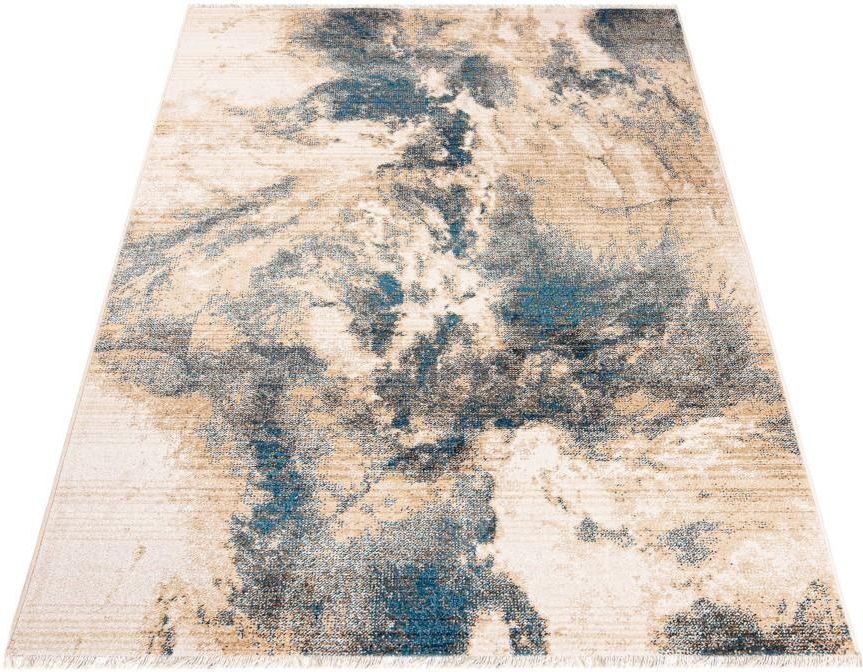 Dywan Rivo 00.19a beige z kolekcji Rivo to prawdziwe dzieło sztuki, które zachwyca swoją delikatnością i elegancją. Dominującym kolorem tego dywanu jest beż, który tworzy tło dla subtelnych, artystycznych wzorów. Beżowe tło jest idealnie stonowane, co sprawia, że dywan ten pasuje do wielu wnętrz, nadając im ciepła i przytulności. Na tej neutralnej bazie rozciągają się dodatki w odcieniach szarości, błękitu i czerni, które tworzą efekt mglistych, abstrakcyjnych smug. Te kolory dodają dywanowi głębi i dynamiki, sprawiając, że wzór jest zarazem nowoczesny i klasyczny. Wzór dywanu przypomina naturalne formacje, jakby był inspirowany ruchami wody lub chmurami na niebie, co dodaje mu mistycyzmu i artystycznego wyrazu. Dywan ma prostokątny kształt i jest wykończony frędzlami na krótszych bokach, co nadaje mu tradycyjnego charakteru, jednocześnie nie odbiegając od współczesnego designu. Frędzle są delikatne i dobrze zintegrowane z całością, co sprawia, że dywan wygląda na spójny i elegancki. Wzór dywanu jest nieregularny, co dodaje mu unikalności i sprawia, że każdy fragment dywanu jest inny, co może być inspiracją do tworzenia różnorodnych aranżacji wnętrz. Wyobraź sobie wnętrze, w którym dywan Rivo 00.19a beige jest centralnym punktem. W salonie z minimalistycznymi meblami w odcieniach bieli i szarości, dywan ten doda ciepła i miękkości, a jego wzór będzie pięknie współgrał z nowoczesnymi dodatkami, jak designerskie lampy czy obrazy z abstrakcyjnymi motywami. W sypialni, ułożony przy łóżku, stworzy przytulną atmosferę, idealną do relaksu, a jego kolorystyka będzie harmonizować z pościelą w pastelowych tonach. W biurze domowym, dywan ten może być inspiracją do kreatywnej pracy, wprowadzając spokój i harmonię. Jeśli szukasz dywanu, który spodoba się osobom ceniącym sobie elegancję, nowoczesność i artystyczny wyraz, Rivo 00.19a beige jest idealnym wyborem. Zachęcamy do zakupu, by Twoje wnętrze nabrało wyjątkowego charakteru. Kolekcja dywanów RIVO to propozycja dla lubiących nowoczesność oraz tradycję. Dywany te zostały wykonane z najwyższej jakości przędz polipropylen + bawełna. Dywany te wyróżniają się przede wszystkim bardzo wysoką odpornością na ścieranie, ich włókna są sprężyste, a także odporne na odkształcenia. Są bardzo łatwe do czyszczenia, w tym do odkurzania i do prania na mokro z użyciem szamponów. Posiadają też wysoki współczynnik przewodnictwa cieplnego, dlatego mogą być używane w pokojach z ogrzewaniem podłogowym. W kolekcji dywanów RIVO znajduje się szeroka gama nowoczesnych i tradycyjnych wzorów, w rożnych wariantach rozmiarowych.