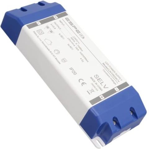 Płaski zasilacz LED 24V 100 Watt profesjonalny serii LN Wysokiej jakości profesjonalny zasilacz Led ESPE serii LN stałonapięciowy 24V o mocy 100 Watt. Transformator Led do taśm 24V, do żarówek i modułów ledowych 24V. Zasilacz ledowy w zamkniętej obudowie. Płaskie zasilacze Led z serii LN PRO to wysokiej jakości zasilacze do montażu w zabudowie meblowej, do montażu w zabudowie sufitowej lub w listwie zabudowy karnisza. Zasilacze serii LN PRO posiadają zamkniętą wytrzymałą obudowę plastikową, a jego przyłącza zasilające na 230V i na 24V są schowane pod specjalnymi przysłonami, co zapewnia bezpieczeństwo użytkowania zasilacza, oraz zapobiega przed przypadkowym porażeniem prądem i napięciem. Zasilacz w płaskiej obudowie plastikowej meblowej zamkniętej, jest to zasilacz z serii Premium, który znajdzie swoje zastosowanie w bardziej wymagających instalacjach oświetleniowych. Podstawowe zastosowanie zasilacza LED: zasilanie taśm ledowych napięciem 24V, zasilanie dla listwy ledowej 24V, zasilanie modułów ledowych 24V, zasilanie dla żarówek ledowych MR16 i G4 na 24V. Podstawowe parametry zasilacza Led: napięcie znamionowe na wyjściu: DC24V, moc znamionowa: 100 Watt, znamionowe obciążenie prądowe: 4.16A, sprawność zasilacza: ⩾88%, maksymalne bezpieczne obciążenie dla zasilacza: 80 Watt, napięcie zasilania na wejściu: AC 220V-240V, częstotliwość napięcia zasilania: 50Hz-60Hz, zabezpieczenie przeciążeniowe: tak, zabezpieczenie zwarciowe: tak, zabezpieczenie przepięciowe: tak, klasa ochronności: II, klasa szczelności: IP30, chłodzenie zasilacza: pasywne, obudowa zasilacza: plastikowa ABS, gniazda przyłączeniowe: zaciskowe-śrubowe ukryte, wymiary zewnętrzne zasilacza (dł. x szer. x wys.): 170mm x 58mm x 34mm.