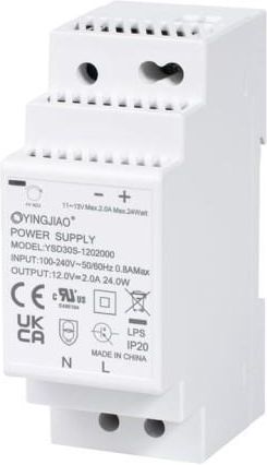 Zasilacz LED na szynę DIN na DC12V o mocy 24 Watt. Wysokiej jakości zasilacz YSDS do montażu na szynie DIN w rozdzielni. Zasilacz impulsowy do Led na napięcie DC12 o mocy znamionowej 24 Watt. Zasilacz stało-napięciowy Led z serii YSDS, jest profesjonalnym zasilaczem DIN, do montażu w rozdzielni elektryczne z możliwością korekty napięcia wyjściowego DC12V. Zasilacz posiada złącze zatrzask na szynę DIN który umożliwia szyki i łatwy montaż w szynie DIN. Dodatkowo zasilacz posiada zabudowane złącza śrubowe śrubowe które w bezpieczny i łatwy sposób pozwala na podpięcie zasilacza do instalacji elektrycznej i oświetleniowej. Dodatkowo zasilacz posiada wbudowane pokrętło do korekty napięcia wyjściowego DC, co pozwala na uniknięcie spadku napięcia DC pomiędzy Led a zasilaczem. Podstawowe zalety zasilacza LED Din YSDS 12V: łatwy i szybki montaż zasilacza na szynie DIN, możliwość korekty napięcia DC12V, zmniejszenie spadku napięcia DC, wysokiej jakości komponenty elektroniczne zasilacza, wysoka stabilizacja napięcia DC 12V, sprawdzona jakość i wysoka niezawodność, dłuższa gwarancja. Podstawowe zastosowanie zasilacza LED YSDS 12V: zasilanie oświetlenia Led z rozdzielni elektrycznej,, zasilanie sterowników Led w rozdzielni, zasilanie urządzeń sterujących automatyką w rodzielni, zasilanie z rozdzielni oświetlenia Led na zewnątrz, zasilanie instalacji oświetleniowej na 12V w rozdzielni, Podstawowe parametry zasilacza Led YSDS 12V 24W: napięcie znamionowe na wyjściu: DC12V, moc znamionowa: 24 Watt, znamionowe obciążenie prądowe: 2A, sprawność zasilacza: ⩾86%, maksymalne bezpieczne obciążenie dla zasilacza: 20 Watt, napięcie zasilania na wejściu: AC 110V-240V, częstotliwość napięcia zasilania: 50Hz-60Hz, możliwość korekty napięcia DC na wyjściu: tak, zakres korekty napięcia DC na wyjściu: 11V-13V zabezpieczenie przeciążeniowe: tak, zabezpieczenie zwarciowe: tak, zabezpieczenie przepięciowe: tak, klasa ochronności: III, klasa szczelności: IP30, chłodzenie zasilacza: pasywne, obudowa zasilacza: plastikowa ABS, gniazda przyłączeniowe: zaciski śrubowe ukryte, wymiary zewnętrzne zasilacza (dł. x szer. x wys.): 58mm x 35mm x 90mm.