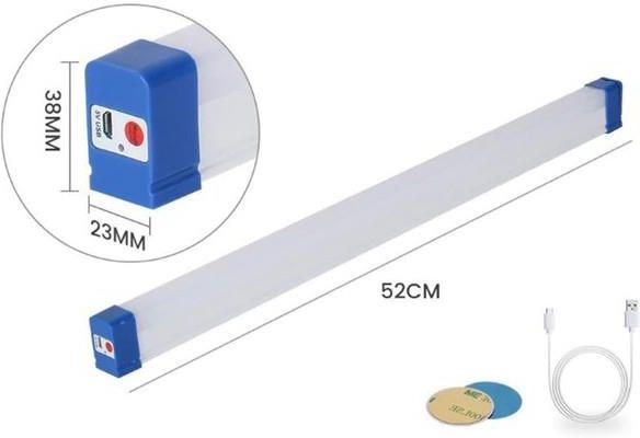 Przenośna listwa oświetleniowa mocowana na magnes z wbudowanym akumulatorem to idealne rozwiązanie do miejsc, gdzie nie ma możliwości doprowadzenia przewodów czy gniazd prądu. Idealnie sprawdzi się jako oświetlenie pod szafkowe np. w kuchni, w garderobie, szafkach, półkach, pod namiotem, na kempingu, w piwnicy czy w samochodzie - jest naprawdę uniwersalna. Bezprzewodowa, przenośna listwa magnetyczna led, przenośna świetlówka, ładowana z dowolnej ładowarki USB. Posiada trzy tryby świecenia 100%, 50% i migotanie. W zestawie metalowe samoprzylepne podkładki mocujące do przyklejenia np. w szafce i kabelek do ładowania z portu USB. Oprawa posiada dwa magnesy mocujące i wieszaczek dzięki czemu można ją powieść w dowolnym miejscu. Lampa może być też z powodzeniem używana w plenerze jako oświetlenie namiotu czy przyczepy, a w razie problemów możemy włączyć tryb S.O.S poprzez przytrzymanie przycisku. Podana moc lampy jest jej mocą faktyczną, a nie jak w innych opisach wirtualną wyliczoną z fusów od herbaty. Zresztą przy 60W mocy przy akumulatorku 2400mAh czas pracy wynosił by 10-12 minut max XD. Za pomocą przycisku możemy: zmieniać tryby świecenia (ciągłe, 50% mocy i migotanie - wystarczy kliknąć) włączyć tryb S.O.S. (wystarczy przytrzymać przycisk - opcja przydatna w terenie) Dane techniczne: Wat: 5W Materiał: PC, Bateria: 2400ma Typ ładowania: ładowanie USB tryby pracy: 3 + 1 (dostępne są trzy tryby, wysokie światło, słabe oświetlenie, szybki błysk) + s.o.s - włączany poprzez długie naciśnięcie przycisku. Rozmiar produktu: jak pokazano Czas ładowania: około 4-6 godzin Czas świecenia: około 2-8 godzin - zależnie od trybu (8 godzin to dla trybu S.O.S.) Lampę zawsze możemy doładować z power banku - nie gaśnie w trakcie ładowania. Montaż lampy: Aby zamontować listwę, wystarczy użyć dołączonych dwóch uchwytów metalowych, przyklejanych na taśmę dwustronną do wybranego punktu instalacji. Przygotuj listwę oraz dołączone do niej elementy montażowe, usuń niebieską folie ochronną z podkładek mocujących (ta niebieska), wyczyść z kurzu i odtłuść miejsce gdzie mają być przyklejone podkładki, usuń papier z napisem "3M" z podkładek, przyklej podkładki w wybranym miejscu z zachowaniem odległości tak aby magnesy lampy w nie trafiły lub znacznie prościej i szybciej: umieść podkładki na magnesach lampy klejem go góry i całość przyciśnij do miejsca gdzie ma wisieć.