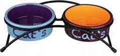 Trixie Zestaw misek ceramicznych 2x03l Witaj w świecie stylowych akcesoriów dla kotów! Kiedy mówimy o codziennej opiece nad naszymi futrzanymi przyjaciółmi, nie możemy zapomnieć o znaczeniu odpowiednich akcesoriów, które nie tylko ułatwiają karmienie i zapewniają komfort, ale także wkomponowują się w wystrój naszego wnętrza. Zestaw misek ceramicznych Trixie to doskonały przykład elegancji i funkcjonalności w jednym. Typ akcesorium Zestaw ceramicznych misek Trixie składa się z dwóch misek, które idealnie nadają się do podawania zarówno wody, jak i karmy dla kotów. Dzięki odpowiednio dobranej głębokości, ceramiczne miski Trixie zapewniają komfort podczas jedzenia oraz picia, co z pewnością wpłynie na samopoczucie Twojego pupila. Tego rodzaju akcesoria są niezbędne w każdej domowej kociej przestrzeni, pozwalając na wygodne i estetyczne zaspokajanie potrzeb żywieniowych. Zastosowanie Miski ceramiczne Trixie zostały zaprojektowane z myślą o codziennym użytkowaniu przez koty. Możesz je używać zarówno do suchej, jak i mokrej karmy, a także do podawania świeżej wody. Wysoka jakość materiałów oraz ich przemyślana konstrukcja sprawiają, że są to akcesoria, które ułatwiają życie zarówno właścicielom, jak i ich pupilom. Stojak, na którym umieszczone są miski, gwarantuje stabilność i uniemożliwia ich przesuwanie podczas jedzenia, co znacząco podnosi komfort użytkowania. Materiał wykonania Trixie miski zostały wykonane z mocnej i grubej ceramiki, co czyni je odpornymi na uderzenia oraz uszkodzenia. Ceramika jest materiałem, który nie tylko wygląda elegancko, ale także jest łatwy w utrzymaniu czystości. Dodatkowo, miski w kolorze niebieskim wprowadzą do wnętrza nutę świeżości. Metalowy stojak, malowany proszkowo, podkreśla nowoczesny design zestawu. Rozmiar i pojemność Każda z misek ma pojemność 300 ml, co sprawia, że są one odpowiednie dla kotów o różnych potrzebach żywieniowych. Średnica miski wynosi 12 cm, a wysokość stojaka to 8 cm, co zapewnia komfortową pozycję podczas jedzenia, minimalizując obciążenie stawów szyi i kręgosłupa. Warto jednak pamiętać, że zestaw misek jest przeznaczony dla kotów o standardowych rozmiarach, co może być istotne dla niektórych użytkowników. Funkcje dodatkowe Zestaw misek Trixie oferuje wiele praktycznych rozwiązań, które zwiększają jego użyteczność. Poniżej przedstawiamy najważniejsze z nich: Zestaw misek wyposażony jest w funkcje, które przyczyniają się do wygodniejszego korzystania z akcesoriów: antypoślizgowe nóżki: Dzięki specjalnie wyprofilowanym nóżkom z nakładkami antypoślizgowymi, miski pozostają stabilne, co znacznie poprawia komfort jedzenia. elegancki design: Niebiesko-fioletowe i fioletowo-pomarańczowe miski z napisami nadają zestawowi modny i elegancki wygląd, który doskonale wpasuje się w wystrój każdego wnętrza. łatwość czyszczenia: Ceramiczne miski można bezpiecznie myć w zmywarce, co znacząco upraszcza proces ich utrzymania w czystości. odpowiednie dla kotów: Ten zestaw misek jest idealny dla kotów o standardowych rozmiarach, zapewniając im komfort podczas posiłków. Zestaw misek ceramicznych Trixie to praktyczne akcesorium, które łączy w sobie funkcjonalność z estetyką. Dzięki swoim cechom, idealnie wpisuje się w potrzeby każdego kota oraz jego właścicieli, zapewniając im komfort i wygodę podczas codziennego karmienia.