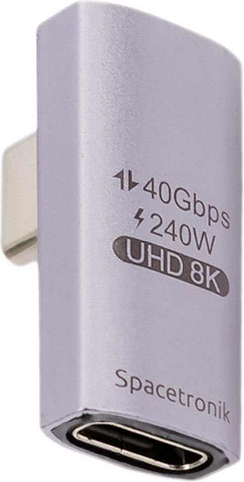 SPU-A22 Adapter Kątowy USB-C 4 na USB-C 240W 8K Spacetronik SPU-A22 W świecie pełnym technologicznych innowacji adapter kątowy USB-C na USB-C 240W 8K Spacetronik wyróżnia się jako niezbędne narzędzie dla każdego, kto ceni sobie wyjątkową wydajność i jakość. Zapewniając niezrównaną moc oraz możliwość przesyłania obrazu w rozdzielczości 8K, ten produkt jest stworzony dla tych, którzy nie akceptują kompromisów. Idealny dla profesjonalistów, graczy i entuzjastów technologii, adapter Spacetronik otwiera nowe horyzonty w połączeniach cyfrowych, gwarantując płynność i klarowność, które przeniosą Twoje doświadczenia na wyższy poziom. Najważniejsze Cechy Metalowa Obudowa - Wysokiej jakości aluminium zapewnia trwałość i odporność na uszkodzenia Transmisja Danych do 40Gbps - Zapewnia niezrównaną prędkość przesyłania danych Obsługa 8K UHD - Adapter umożliwia przesyłanie obrazu w najwyższej jakości Moc do 240W - Bez problemu zasilisz nowoczesne laptopy, smartphony i inne urządzenia Kąt 90 Stopni - Dzięki takiej konstrukcji z łatwością uporządkujesz kable Gniazdo USB-C i Wtyk USB-C - adapter w połączeniu z dwoma kablami może spełniać funkcję przedłużacza USB4 - Najnowszy standard USB zapewnia jeszcze szybszą transmisję danych Najwyższa Definicja Obrazu: 8K@60Hz Wejdź na nowy poziom doświadczenia wizualnego z technologią 8K@60Hz, oferującą niespotykaną dotąd głębię i klarowność obrazu. Ta zaawansowana cecha jest przeznaczona dla tych, którzy nie akceptują kompromisów w jakości obrazu, zapewniając niezrównaną rozdzielczość 7680 x 4320 pikseli. Idealna dla kin domowych, profesjonalnych stanowisk do edycji wideo oraz dla graczy poszukujących maksymalnej immersji. Technologia 8K@60Hz gwarantuje, że każdy detal jest widoczny z perfekcyjną klarownością, a płynność ruchu obrazu utrzymuje się na najwyższym poziomie. Zobacz więcej, doświadcz więcej z każdym urządzeniem wspierającym 8K@60Hz. Obsługiwana Moc do 240W Odkryj możliwości, jakie niesie obsługiwana moc do 240W, otwierając drzwi do nowych wymiarów wydajności i efektywności. Ta imponująca cecha, dostępna w nowoczesnych kablach USB i adapterach, zrewolucjonizuje sposób, w jaki zasilasz i ładujesz swoje urządzenia. Od laptopów wysokiej mocy po zaawansowane stacje dokujące i monitory ? ta technologia umożliwia szybsze ładowanie i bardziej stabilne zasilanie, nawet dla najbardziej wymagających urządzeń. Idealna dla profesjonalistów i graczy poszukujących maksymalnej wydajności bez kompromisów. Wprowadź swoje urządzenia w przyszłość z technologią obsługującą moc do 240W, gwarantującą optymalne zasilanie w każdych warunkach. Przełomowa Przepustowość: 40Gbps Osiągnij nowy poziom wydajności z technologią oferującą przepustowość do 40Gbps. Ta niezwykła cecha pozwala na błyskawiczne przesyłanie danych, obsługę wielu ekranów 4K jednocześnie lub pojedynczego wyświetlacza 8K, oraz szybkie ładowanie urządzeń przy jednoczesnym przesyłaniu danych i wideo. Idealna dla profesjonalistów potrzebujących ekstremalnej wydajności i minimalnego czasu reakcji, jak również dla entuzjastów gamingu i technologii, którzy pragną najwyższej jakości wizualnej i płynności rozgrywki. Z tą przepustowością, Twoje urządzenia będą mogły wykorzystać pełen potencjał połączenia, zapewniając niezrównane doświadczenie użytkownika.