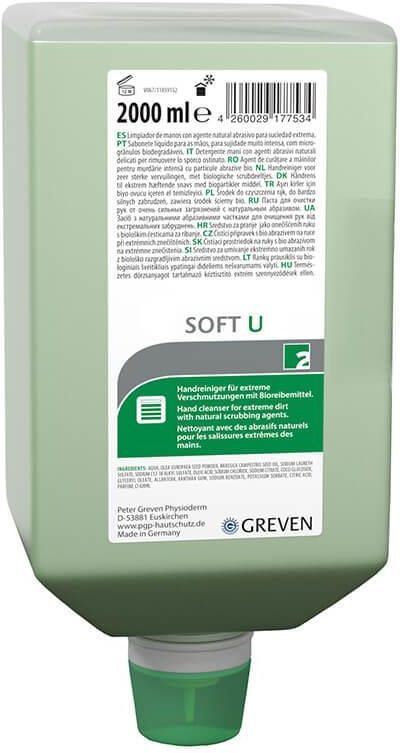Półpłynna pasta BHP do mycia rąk Greven Soft U z naturalnymi substancjami trącymi z mączki z pestek oliwnych. Greven Soft U jest przeznaczona do mycia rąk ze szczególnie uporczywych zabrudzeń różnego pochodzenia, np. smary, oleje, tłuszcze, sadza, pył metaliczny i węglowy. Pasta bhp Greven Soft U …