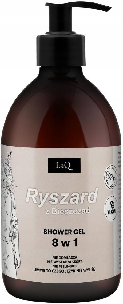 LaQ Ryszard z Bieszczad Żel Pod Prysznic Męski 8w1 Ekstrakt z Tabaki 500ml Łagodnie oczyszczający żel dla mężczyzn Oto ja, naturalny i wegański żel pod prysznic dla mężczyzn. Jako jedyny w Bieszczadach zawieram wyciąg z liści tytoniu szlachetnego. Poza tym jaram się tym, że pachnę męskimi …