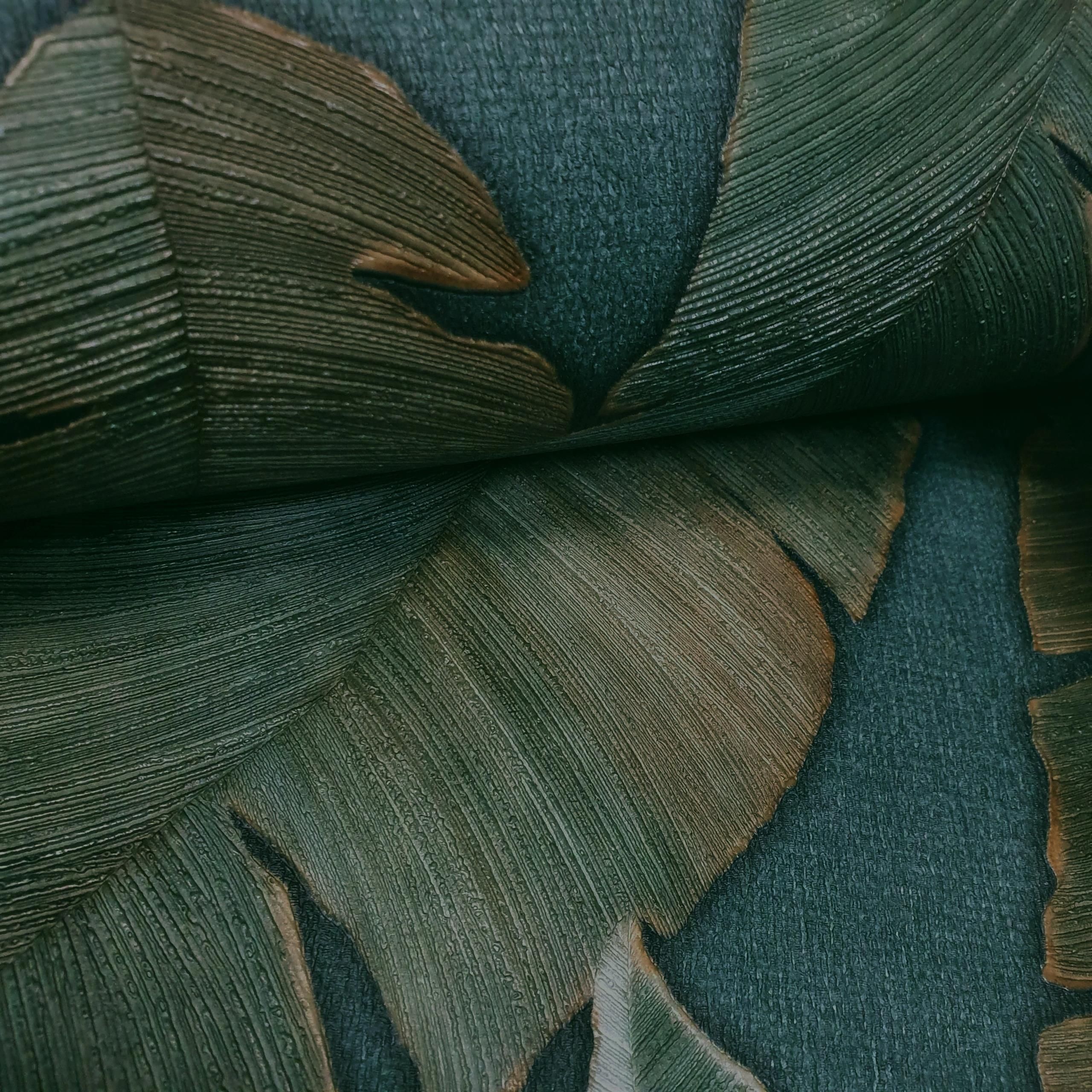 Producent: niemiecka fabryka AS Creation Wzór dekoracyjne liście bananowca odcienie zieleni, szmaragdowy, odcienie beżów Struktura tapeta tłoczona, o głębokiej strukturze tapeta matowa wierzchnia warstwa tapety to twardy winyl - tapeta jest więc bardzo odporna na drobne uszkodzenia. rolka jest gruba i ciężka, bardzo dobrej jakości Parametry techniczne produktu: Wymiar rolki: 0,53m x 10,05m Powierzchnia rolki: 5,32m2 Pasowanie wzoru: 64 cm Zmywalność: bardzo dobra Odporność na promienie słoneczne: bardzo dobra Materiał: tapeta winylowa na flizelinie - oznacza to, że tapeta składa się z dwóch warstw. Wierzchnia - winylowa zapewnia znakomite parametry użytkowe, czyli zmywalność, odporność na uszkodzenia oraz odporność na odbarwienia spowodowane promieniami słonecznymi. Spodnia - flizelinowa jest wykonana z włókniny poliestrowej. Dzięki flizelinie tapetowanie jest bardzo proste i szybkie - klej nanosi się bezpośrednio na ścianę, na którą kładziemy suche pasy tapety. Ponadto dzięki flizelinie tapety podczas tapetowania i wysychania nie kurczą ani nie rozciągają się. Dodatkowo tapety winylowe wpływają korzystnie na pomieszczenie - lekko ocieplają ściany, tłumią hałas i maskują niewielkie wady ścian. Zalecane kleje Metylan Direct Vlizo