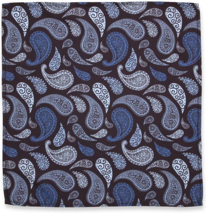 Brązowo-niebieska poszetka we wzory paisley Woźniki
