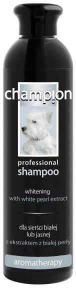 Zastosowanie: Profesjonalny szampon pielęgnacyjny o doskonałych właściwościach myjących. Rozświetla i delikatnie rozjaśnia naturalny kolor sierści. Łagodnie i skutecznie usuwa zabrudzenia, nie naruszając bariery ochronnej skóry. Nawilża skórę. Nadaje włosom jedwabisty połysk. Dzięki zapachowi lawendy działa aromaterapeutycznie - relaksuje i redukuje stres związany z kąpielą. Produkt nie zawiera: mydeł, parabenów, olejów mineralnych i pochodnych ropy naftowej, ftalanów, GMO. Zalecenia: Szampon dla psów o białym lub jasnym kolorze włosa. [SPACE_HERE] Składniki aktywne: Ekstrakt z białej perły - rozświetla i delikatnie rozjaśnia naturalny kolor psów o białym lub jasnym włosie. Kompozycja łagodnie działających środków powierzchniowo czynnych o doskonałych własnościach myjących, pozbawionych działania drażniącego. Sposób użycia: Sierść zmoczyć letnią wodą. Niewielką ilość szamponu nanieść w kilku miejscach i masować do uzyskania piany. Pozostawić około 2-3 minut, a następnie dokładnie spłukać wodą. W razie konieczności zabieg można powtórzyć. Chronić oczy, uszy i pysk zwierzęcia. Dla wzmocnienia efektu pielęgnacyjnego zaleca się użycie odzywki dla psów o sierści białej lub jasnej z serii Champion. Skład: Aqua, Sodium Laureth Sulfate, Disodium Laureth Sulfosuccinate, Cocamide DEA, Miparaulyl Sulfate, Laureth-13, Disodium Cocoamidodiacetat, Soyamide DEA, Glycol Stearate, Cocoamide MEA, Propylene Glycol, Sodium Chloride, Panthenol, Parfum, Methylisothiazolinone, Methylchloroisothiazolinone, C.I. 42090.
