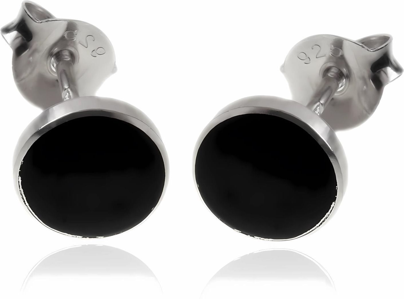 Delikatne wykonane ze srebra kolczyki na sztyfcie o okrągłym kształcie, zdobionego czarnym onyksem.