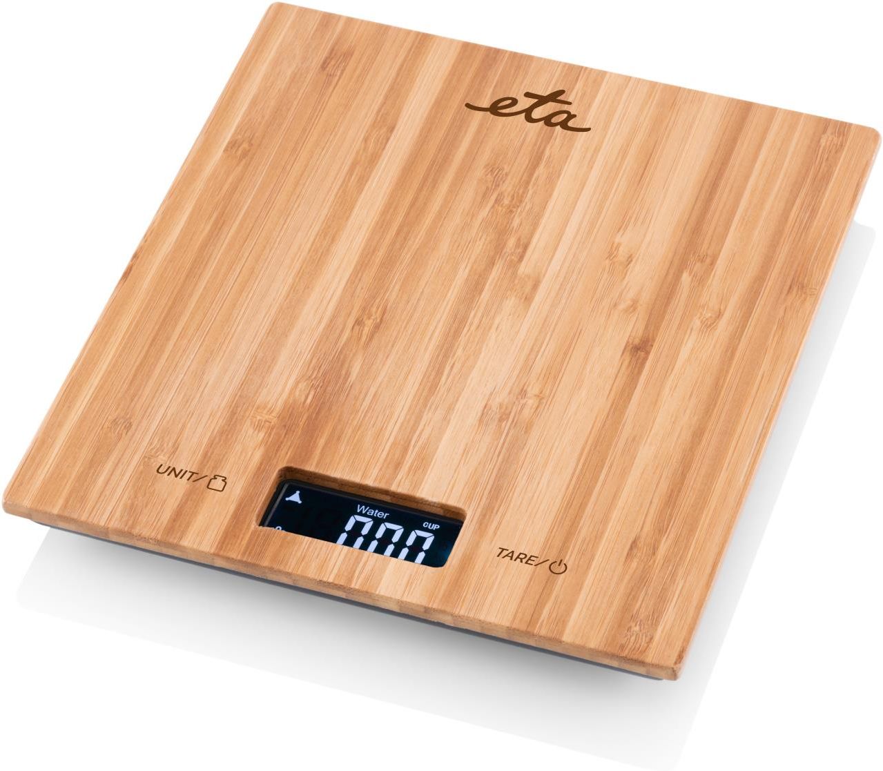 Cyfrowa waga kuchenna ETA Bambi Cyfrowa waga kuchenna ETA Bambi z bambusową powierzchnią ważąca z dokładnością do 1g idealnie sprawdzi się jako pomoc w codziennej pracy w kuchni. Oprócz ważenia może także mierzyć objętość najczęściej używanych płynów, takich jak woda czy mleko. Najważniejsze informacje Powierzchnia bambusowa 180 x 200 x 20 mm Maksymalne obciążenie do 5 kg Dokładność do 1 g Pomiar objętości wody i mleka Ważenie w jednostkach g/lb/oz/ml Funkcja zerowania (TARA) Ręczne/automatyczne wyłączanie Wskaźnik przeciążenia i niskiego poziomu baterii Łatwa i higieniczna konserwacja Elegancki wygląd Wyraźny wyświetlacz LCD Działanie na 2 bateriach AAA Nóżki antypoślizgowe Piękno natury z nowoczesnymi elementami Naturalne materiały są niezbędnym elementem kuchni. Waga bambusowa ETA Bambi będzie designerskim i funkcjonalnym dodatkiem, który sprawi, że gotowanie i pieczenie stanie się przyjemniejsze. Potrafi ważyć w kilku dobrze znanych jednostkach (g/lb/oz), a także mierzyć w mililitrach. Posiada również funkcję zerowania/ tarowania. Wartość jest wyświetlana na czytelnym wyświetlaczu LCD. Waga ETA Bambi została zaprojektowana tak, aby maksymalnie ułatwić Ci codzienną pracę w kuchni. Stabilność na blacie zapewniają dwie antypoślizgowe nóżki. Po długim okresie bezczynności waga automatycznie się wyłączy, aby oszczędzać baterie (w zestawie 2 baterie AAA). W momencie zbliżającego się rozładowania, a także o możliwym przeciążeniu waga pokaże Ci komunikat. Jednak dzięki dużej pojemności (aż do 5 kg) nie musisz się o to martwić podczas gotowania. Parametry techniczne TARA: tak Maksymalne obciążenie: 5 kg Miska wagowa: nie Dokładność ważenia: 1 g Obliczanie wartości odżywczych: nie Typ baterii: AAA Liczba baterii: 2 Wskaźnik wagi: wyświetlacz LCD Wymiary produktu Szerokość: 18 cmWysokość: 2 cmGłębokość: 20 cmWaga: 0,25 kgWymiary opakowania:Szerokość: 19 cmWysokość: 3 cmGłębokość: 21 cmWaga: 0,37 kg