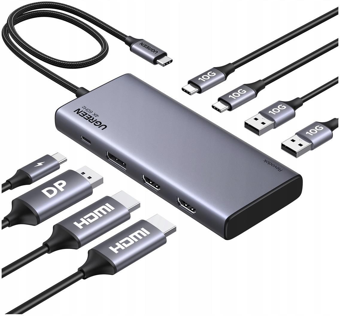 UGREEN Revodok Pro 308 Stacja dokująca z potrójnym wyświetlaczem Hub USB C 2HDMI DP (maks. 4K przy 60 Hz), 10 Gb/s 4 * porty USB (2 * USB A i 2 * USB C), PD 100W Producent: Ugreen Group Limited Stacja dokująca UGREEN Revodok Pro 308 to innowacyjne rozwiązanie dla efektywnego środowiska pracy. Pozwala na podłączenie wielu urządzeń jednocześnie dzięki 8 portom, w tym 2 portom HDMI i 1 portowi DP, oferując rozdzielczość 4K przy 60 Hz. Transfer danych odbywa się z prędkością 10 Gb/s, a port PD 100W gwarantuje szybkie ładowanie urządzeń. To idealne rozszerzenie dla stacji roboczych i biur domowych. Dzięki potrójnemu wyświetlaczowi, stacja dokująca Revodok Pro 308 umożliwia zaawansowane funkcje ekranu na trzech monitorach jednocześnie, zapewniając imponujące wrażenia wizualne. Cztery porty USB (2 * USB A i 2 * USB C) spełniają wszystkie potrzeby związane z transferem danych, bez obaw o spowolnienie. Ten solidny i niezawodny produkt zapewnia maksymalizację produktywności i komfortu pracy. Stacja dokująca UGREEN Revodok Pro 308 to doskonałe rozwiązanie dla każdego biura, biura domowego lub konfiguracji do gier. Wykorzystaj jej potencjał, aby rozszerzyć funkcje i możliwości swojej stacji roboczej. Kompatybilna z wieloma urządzeniami, zapewnia stabilność pracy i efektywność. Długość kabla wynosi 30cm, a waga opakowania to 0.28 kilograma. Wieloportowy adapter 8 w 1: Zmień swoje miejsce pracy w naprawdę wydajne środowisko dzięki stacji dokującej Revodok Pro 308. Ta najnowocześniejsza i wszechstronna stacja dokująca oferuje osiem portów, które umożliwiają łatwe podłączenie wszystkich urządzeń. 2*HDMI, DP, 10 Gb/s 4*porty USB, PD 100 W. Idealny do każdego biura, biura domowego lub konfiguracji do gier. Potrójny wyświetlacz: Stacja dokująca Revodok Pro 308 USB C jest wyposażona w 2 porty HDMI i 1 port DP, które mogą zapewnić zaawansowane funkcje ekranu nawet na trzech ekranach jednocześnie, przenosząc wydajność pracy na zupełnie nowy poziom. Doświadcz oszałamiającej rozdzielczości 4K przy 60 Hz i twórz wspaniałe obrazy i filmy, zapewniając wciągające wrażenia wizualne. Superszybki transfer danych: Cztery porty USB zaspokajają wszystkie potrzeby związane z przesyłaniem danych. Korzystaj z dużej szybkości transferu 10 Gb/s przez dwa porty USB-A i dwa porty USB-C i nie pozwól, aby wolne przesyłanie danych Cię spowolniło. Funkcja szybkiego ładowania PD: Port ładowania PD o mocy 100 W zapewnia szybkie i wydajne zasilanie urządzeń. Dzięki tej zaawansowanej funkcji nieprzerwana praca lub zabawa nie stanowi problemu. Stacja dokująca UGREEN Revodok Pro 308 to rozwiązanie umożliwiające maksymalizację produktywności, komfortu i wydajności. Użyj tej solidnej i niezawodnej stacji dokującej, aby rozszerzyć funkcje i możliwości swojej stacji roboczej. Długość kabla: 30cm waga opakowania przedmiotu: 0.28 kilograms producent: Ugreen Group Limited zewnętrznie przypisany identyfikator produktu: 6941876236251 zalecane węzły przeglądania: 20788447031 punkt znaku wypunktowania: Wieloportowy adapter 8 w 1: Zmień swoje miejsce pracy w naprawdę wydajne środowisko dzięki stacji dokującej Revodok Pro 308. Ta najnowocześniejsza i wszechstronna stacja dokująca oferuje osiem portów, które umożliwiają łatwe podłączenie wszystkich urządzeń. 2*HDMI, DP, 10 Gb/s 4*porty USB, PD 100 W. Idealny do każdego biura, biura domowego lub konfiguracji do gier., Potrójny wyświetlacz: Stacja dokująca Revodok Pro 308 USB C jest wyposażona w 2 porty HDMI i 1 port DP, które mogą zapewnić zaawansowane funkcje ekranu nawet na trzech ekranach jednocześnie, przenosząc wydajność pracy na zupełnie nowy poziom. Doświadcz oszałamiającej rozdzielczości 4K przy 60 Hz i twórz wspaniałe obrazy i filmy, zapewniając wciągające wrażenia wizualne., Superszybki transfer danych: Cztery porty USB zaspokajają wszystkie potrzeby związane z przesyłaniem danych. Korzystaj z dużej szybkości transferu 10 Gb/s przez dwa porty USB-A i dwa porty USB-C i nie pozwól, aby wolne przesyłanie danych Cię spowolniło., Funkcja szybkiego ładowania PD: Port ładowania PD o mocy 100 W zapewnia szybkie i wydajne zasilanie urządzeń. Dzięki tej zaawansowanej funkcji nieprzerwana praca lub zabawa nie stanowi problemu., Stacja dokująca UGREEN Revodok Pro 308 to rozwiązanie umożliwiające maksymalizację produktywności, komfortu i wydajności. Użyj tej solidnej i niezawodnej stacji dokującej, aby rozszerzyć funkcje i możliwości swojej stacji roboczej., Długość kabla: 30cm numer modelu: 35625 Opis produktu: Stacja dokująca UGREEN Revodok Pro 308 z potrójnym ekranem - świetne rozszerzenie do laptopów! UGREEN Revodok Pro USB C Hub konwertuje port USB C na dwa porty HDMI 4K i DP, szybkie porty danych USB A/USB C 10 Gb/s i PD 100 W. Wszystkie 8 portów umożliwia jednoczesne podłączenie wielu urządzeń peryferyjnych do laptopów. Szeroka kompatybilność: Adapter wieloportowy jest kompatybilny z MacBookiem Pro 2017-2021, MacBookiem Air 2018 2020, iMac Pro 2019, ENVY 15, XPS 15, Yoga C740, Surface Go 3/2, Surface Pro 9/8/7, Surface Book 3 itp. Zaleca się podłączanie tylko jednego dysku twardego na raz. Dysk twardy 3,5 cala musi być zasilany z zewnętrznego zasilacza. 2. Zapotrzebowanie mocy podłączonego urządzenia nie może przekraczać maksymalnego prądu wyjściowego do 2A. Nie używaj koncentratora jako ładowarki USB do telefonu komórkowego. 3. Koncentrator nie jest kompatybilny z USB SuperDrive. marka: UGREEN nazwa przedmiotu: UGREEN Revodok Pro 308 Stacja dokująca z potrójnym wyświetlaczem Hub USB C 2HDMI DP (maks. 4K przy 60 Hz), 10 Gb/s 4 * porty USB (2 * USB A i 2 * USB C), PD 100W data uruchomienia strony produktu: 2023-12-29T09:48:19.535Z numer części: 35625