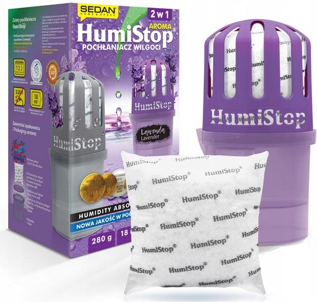 Pochłaniacz Wilgoci HumiStop AROMA o zapachu lawendy. Pochłaniacz wilgoci HumiStop to wysokiej jakości urządzenie, które doskonale radzi sobie z nadmiarem wilgoci w pomieszczeniach do 18 m² oraz dodatkowo nadaje dyskretny, lecz wyczuwalny zapach. Kontroluje i reguluje optymalny poziom wilgoci, …