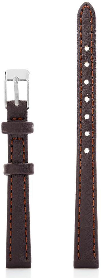Pasek skórzany Jordan Keer 10mm Materiał: Skóra naturalna. Wzór gładki. Kolorystyka: pasek : kolor ciemnobrązowy, zapinka: kolor srebrny, Wymiary: szerokość przy mocowaniu: 10 mm szerokość przy klamerce: 8 mm długość części z klamerką: 76 mm długość części z dziurkami: 105 mm liczba dziurek: 7