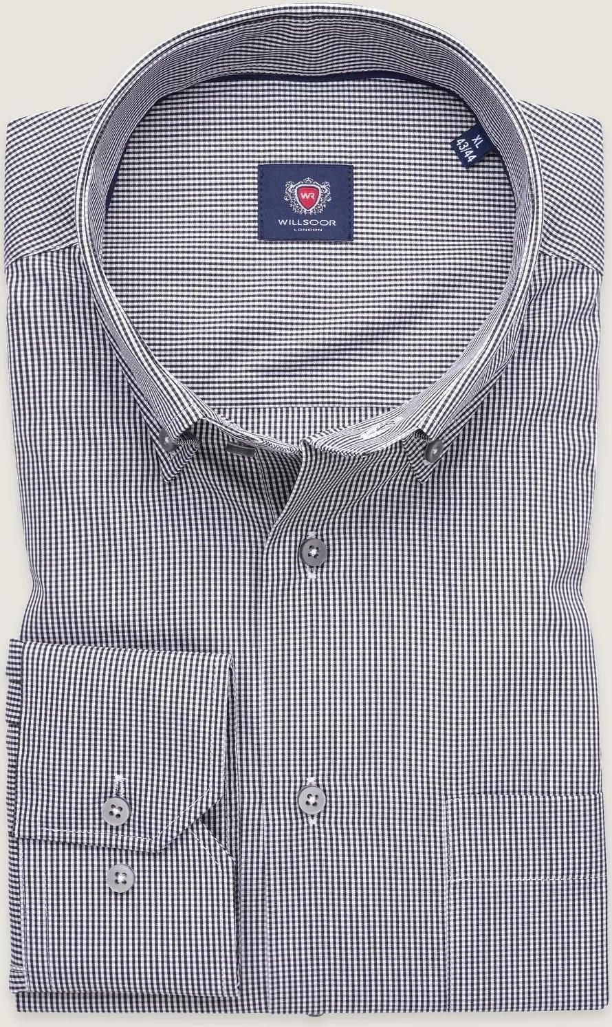 Klasyczna koszula w drobną, czarną i białą kratkę z podpinanym kołnierzykiem, 100% bawełna