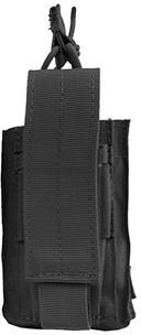 Ładownica Kangaroo Mag Pouch Gen II na jeden magazynek do M4/AR15 i jeden dwurzędowy do pistoletu. Magazynek do M4/AR15 przed wypadnięciem jest zabezpieczony elastyczną linką a magazynek pistoletowy klapą z rzepem. W obu ładownicach na dnie umieszczono otwory drenażowe. Ładownicę montuję się przy użyciu troków zgodnych z systemem MOLLE Cechy: Ładownica na jeden magazynek AR i jeden pistoletowy Każdy magazynek posiada osobną kieszeń Otwory drenażowe w dnie każdej kieszeni Magazynki zabezpieczone przed wypadnięciem przez elastyczny bungee cord lub klapę na rzep Troki w standardzie MOLLE do łatwego montażu na wyposażeniu Nie kompatybilna z magazynkami PMAG Gen 3 Dane techniczne: Wymiary: 78 x 110 x 50 mm Waga: 124 g Kolor: Czarny
