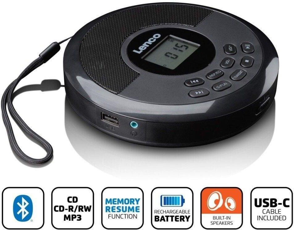 Ciesz się ulubioną muzyką tak, jak chcesz, gdziekolwiek jesteś, dzięki odtwarzaczowi Lenco CD-340BK Discman. Ten stylowy i kompaktowy Discman łączy nostalgię płyt CD z nowoczesną technologią, taką jak transmisja i odbiór Bluetooth®, odtwarzanie przez USB oraz wbudowane głośniki stereo.