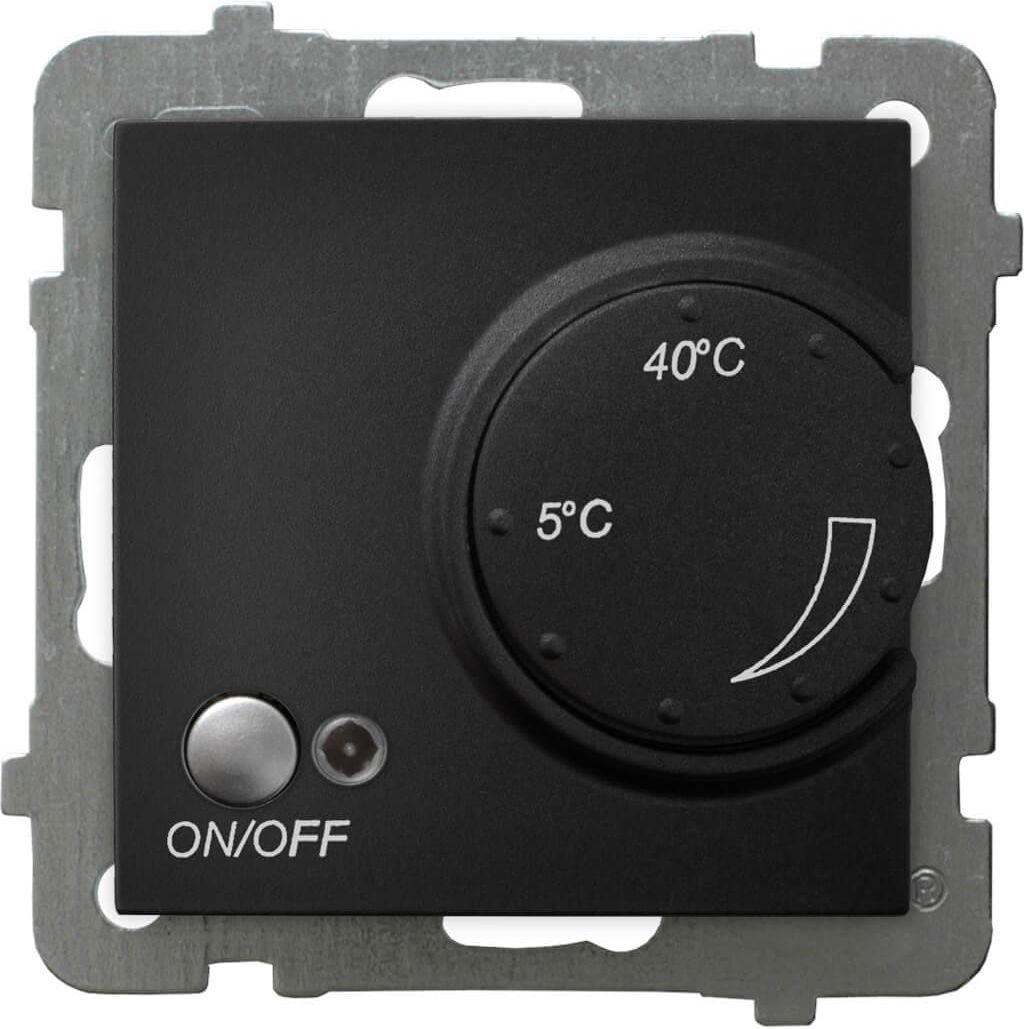 Regulator temperatury Ospel As RTP-1GN/m/33 z czujnikiem napowietrznym czarny metalik. Regulator temperatury z czujnikiem napowietrznym jest przeznaczony do regulacji temperatury w pomieszczeniach, w których zastosowano dowolny typ ogrzewania (podłogowe,
