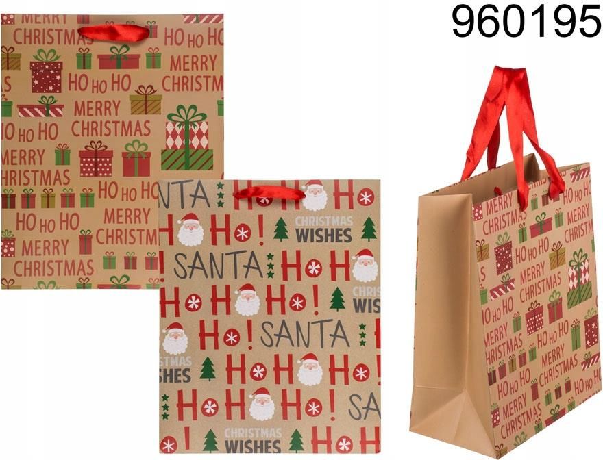 Torba prezentowa Mery Christmas 26 x 10 x 32 cm Torba prezentowa Mery Christmas 26 x 10 x 32 cm Bardzo ładna torba prezentowa, która idealnie się sprawdzi w trakcie świąt Bożego Narodzenia oraz w zimowych miesiącach. Torba osiąga wymiary: 26 x 10 x 32 cm. Wysyłamy jako mix wzorów. Gadżet w skrócie:- torba prezentowa - dostępna w kilku wzorach graficznych- wysyłamy jako mix wzorów- cena dotyczy 1 sztuki- wymiary 26 x 10 x 32 cm- doskonale nadaje się do zapakowania prezentu w bardzo oryginalny sposób Wymiary produktu: 26 x 32 cmWaga produktu: 0,06 kgMinimalne zamówienie: 1 sztukaStand/display: brak, karton wewnętrzny 48 sztuk, karton zbiorczy 96 sztuk Uwaga! Jeżeli w opisie produktu występuje informacja „Sprzedajemy / Wysyłamy jako mix wzorów”, a na zdjęciach pojawiają się różne warianty, jest to skierowane dla zamówień wielosztukowych. Dla pojedynczych sztuk oznacza to wysyłkę losowego wzoru / koloru – Jeżeli zależy Ci na konkretnym wzorze – proszę o informacje podczas zakupu.