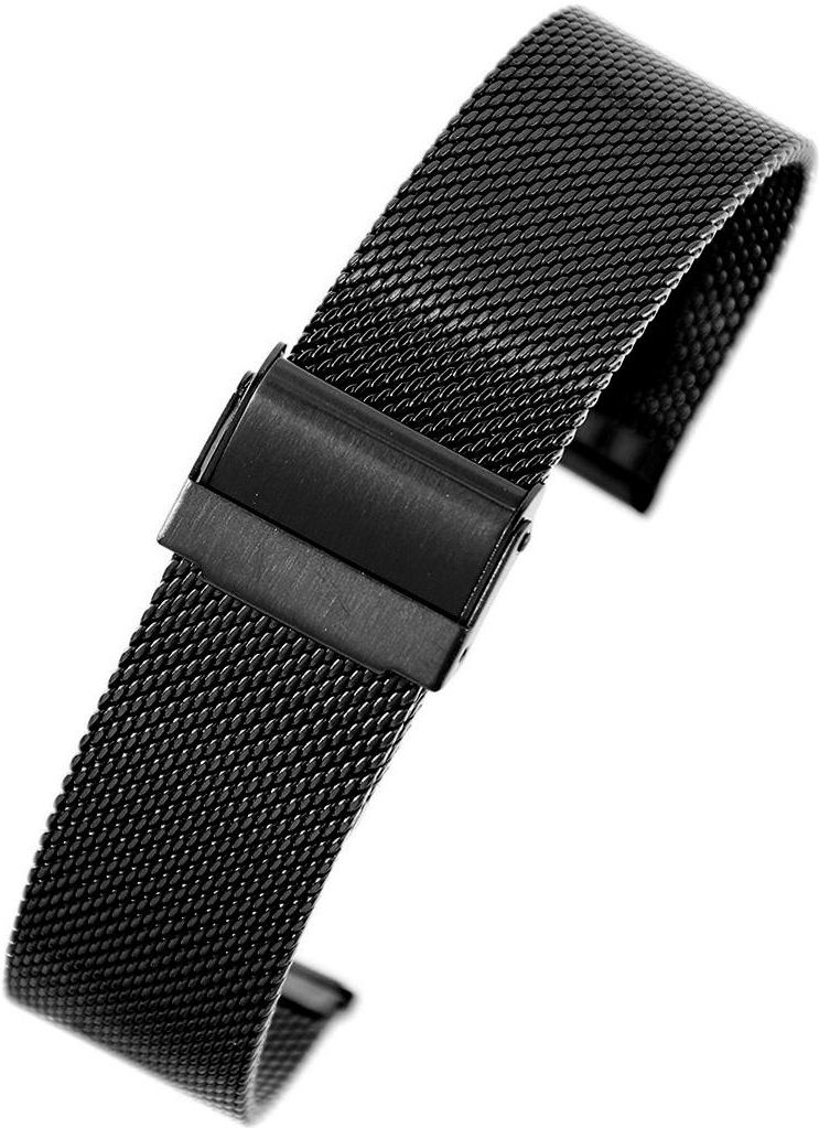 Stalowa bransoletka typu mesh z dodatkowym zamknięciem Pasuje zegarków ze standardowym mocowaniem 22mm. Producent PACIFIC. Materiał: Stal. Kolorystyka: Kolor czarny, Wymiary: szerokość przy mocowaniu: 22 mm długość części z zapinką: 91 mm długość części z regulacją: 120 mm