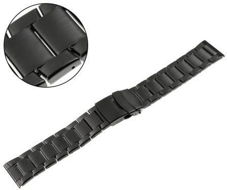 Pasek / Bransoleta: Rodzaj - BRANSOLETA Materiał - STAL NIERDZEWNA Kolor - CZARNY Mocowanie - UNIWERSALNE Zapięcie: Rodzaj - PÓŁMOTYLKOWE Materiał - STAL NIERDZEWNA Kolor - CZARNY Szerokość: przy mocowaniu - 24mm przy klamerce - 22mm Długość: maksymalna - 185mm* *Zaokrąglenie pomiarów ( 5mm)